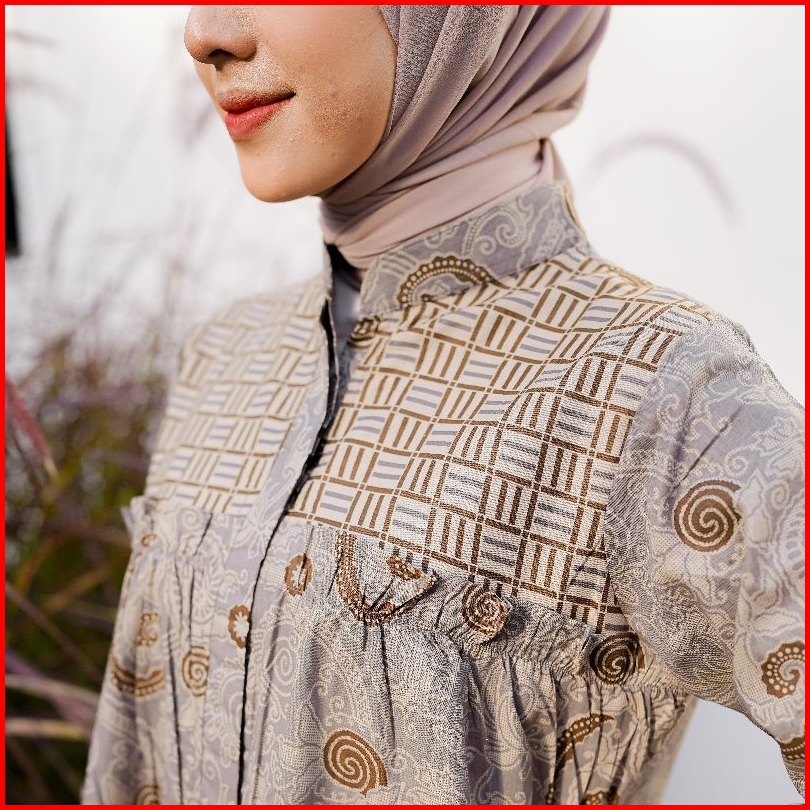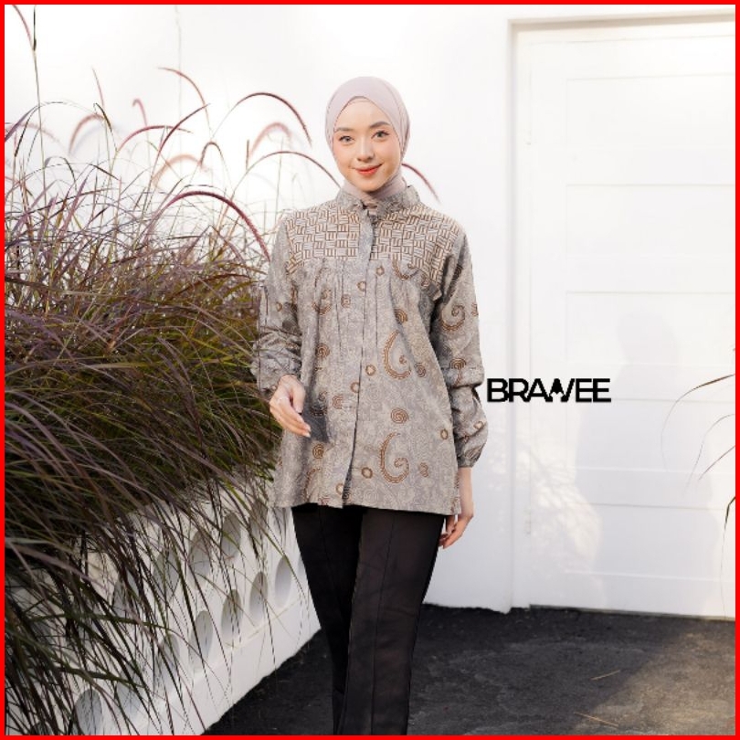 Brawee Pakaian Wanita Pakaian Tradisional Atasan Tradisional Batik Wanita Keong Abu