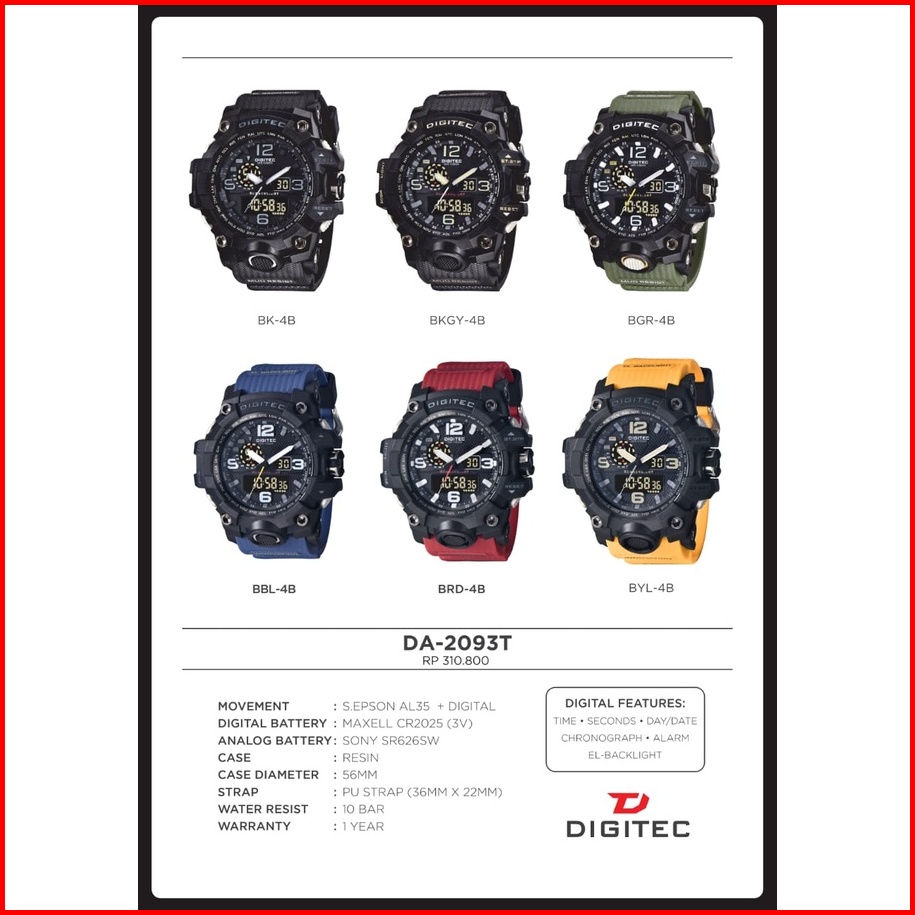 Jam Tangan Digitec Original Da-2093t Da2093 2093t Dg 2093 Digitec Watch Dual Time Strap Rubber Karet Sport Digital Beren