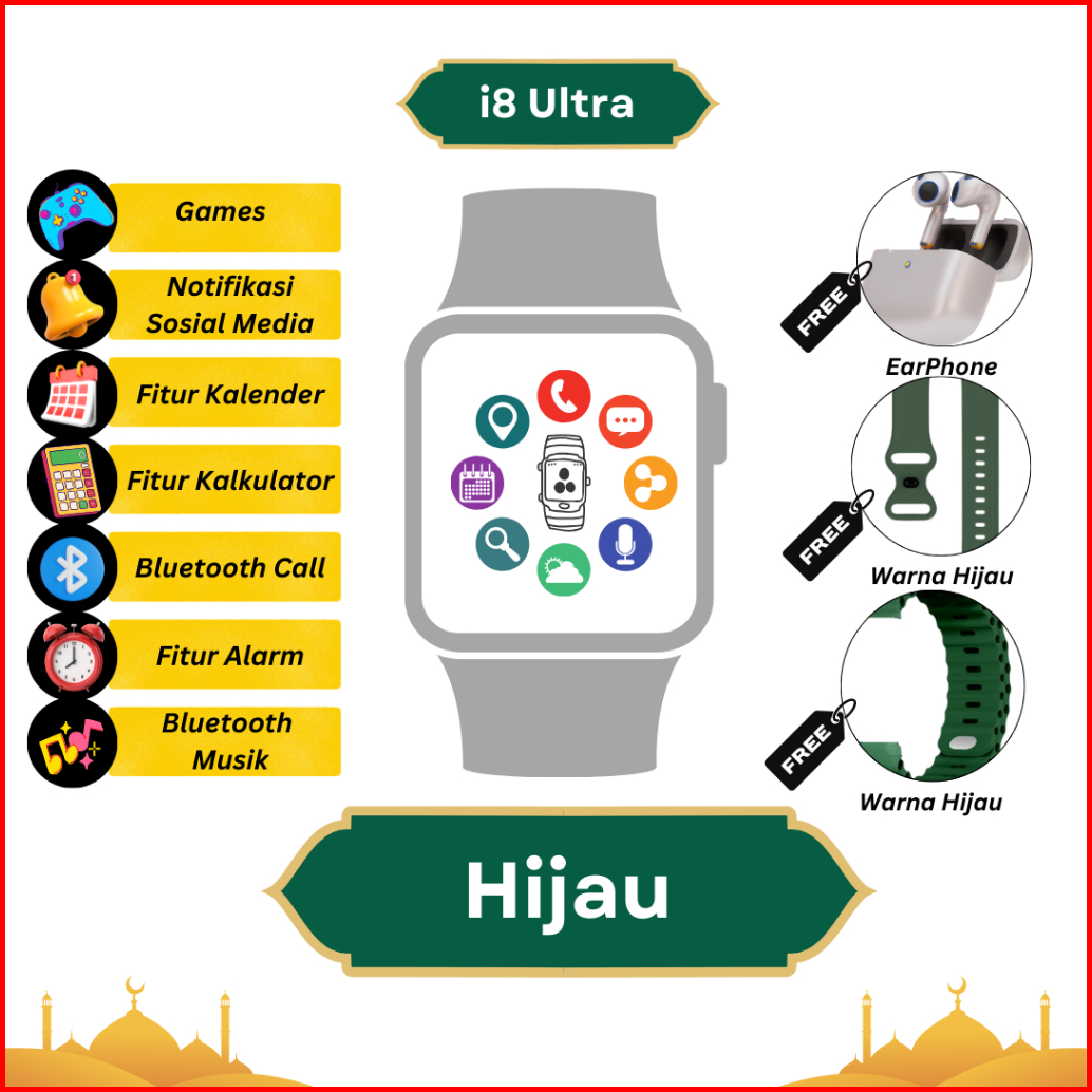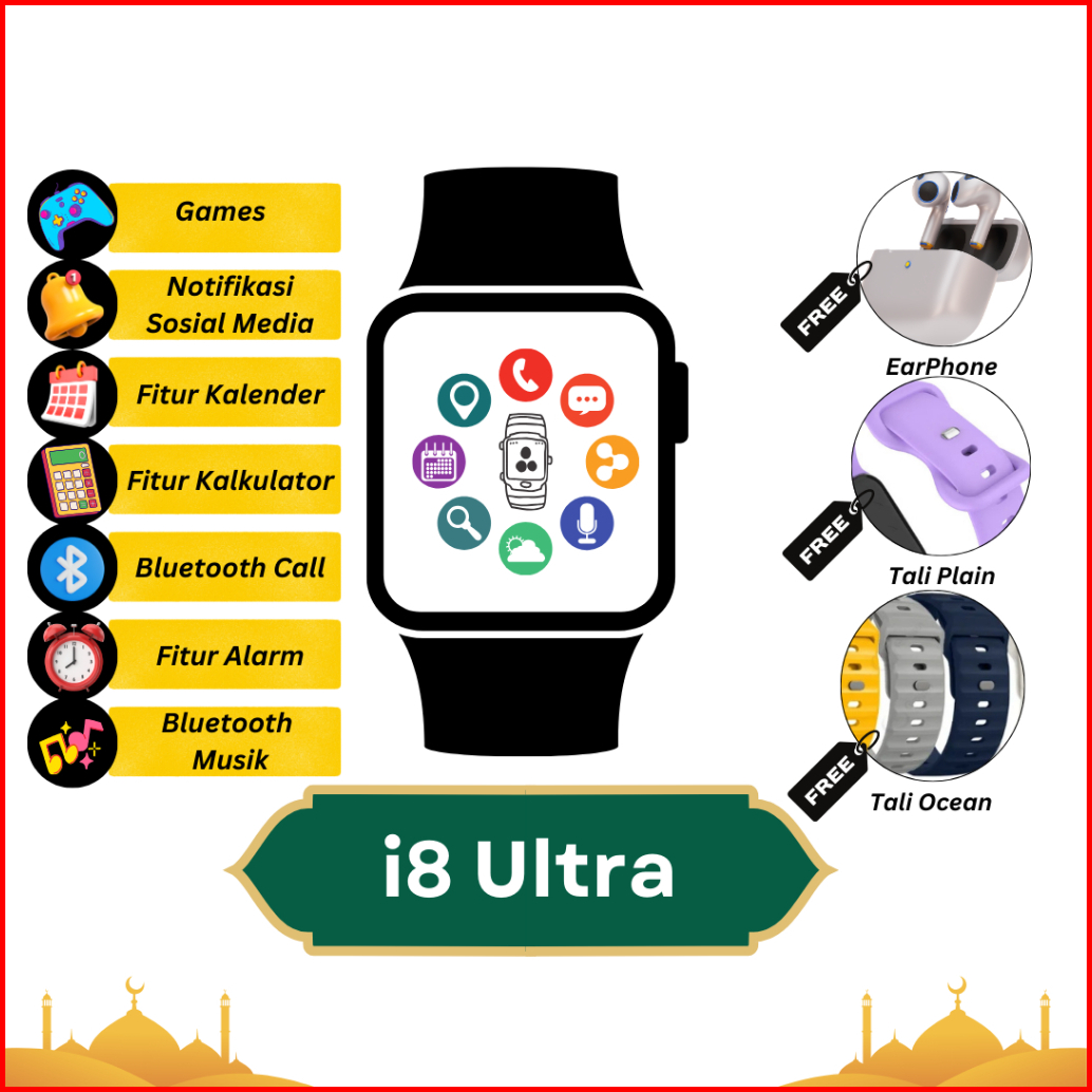 Smartwatch I8 S8 Ultra Series 8 Ultra Original Ipods Paket Tws Komplit 2 Tali Ocean Dan Strap Silicone Big Screen 2.0 In