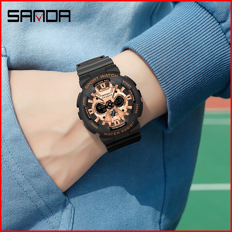 Sanda 6068 Jam Tangan Wanita Digital Analog Tali Rubber Chronograph Anti Air Currenos