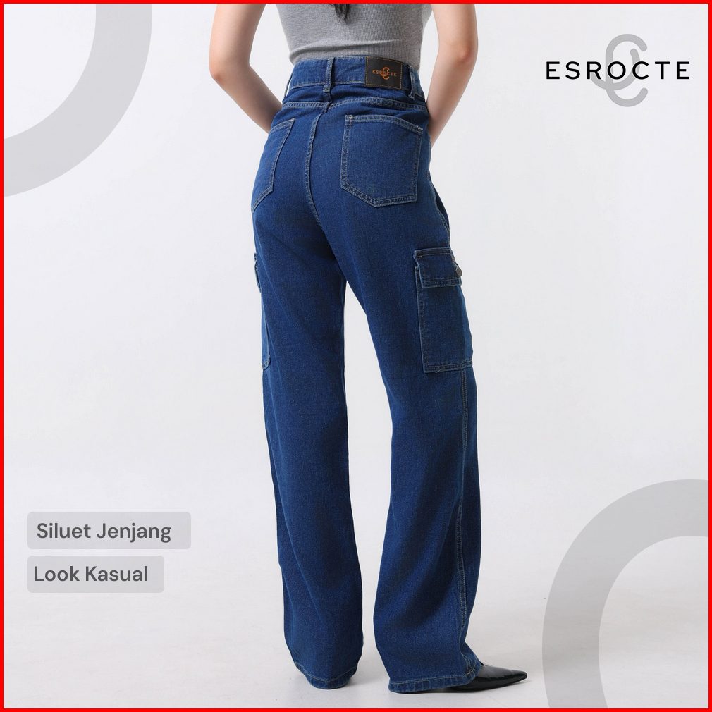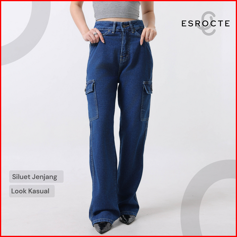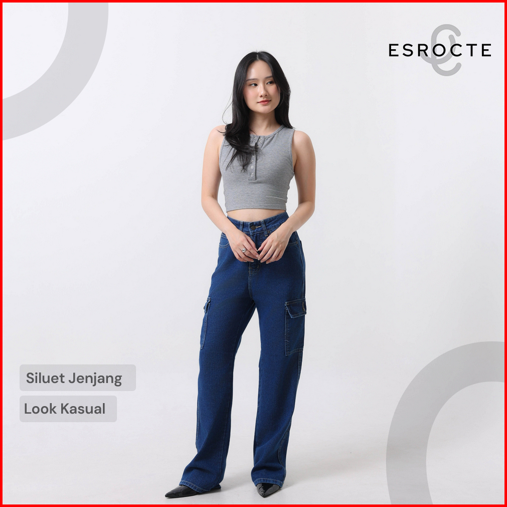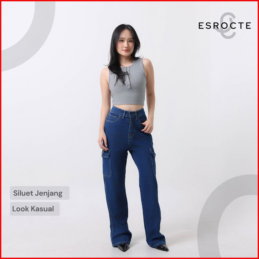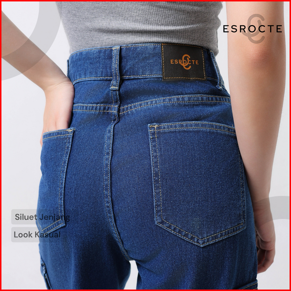 Esrocte Lexa Pants Celana Cargo Loose Jeans High-waist Wanita Navy 2638