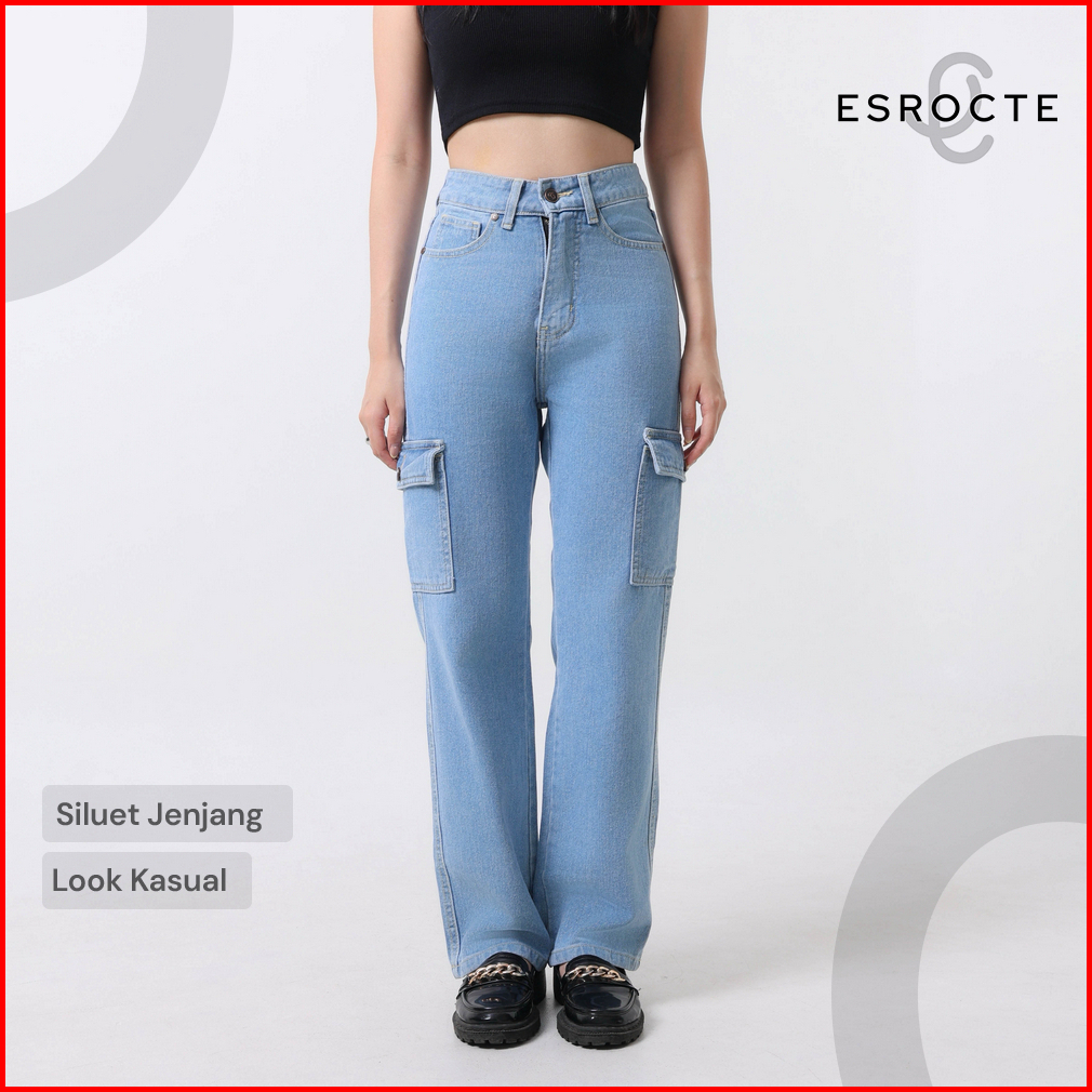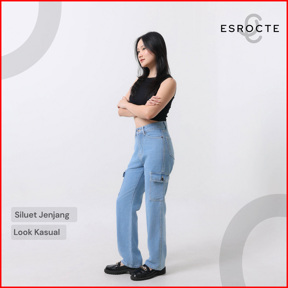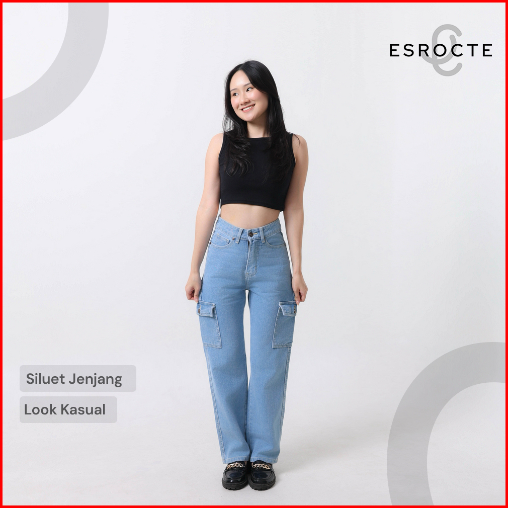 Esrocte Lexa Pants Celana Cargo Loose Jeans High-waist Wanita Biru Folder 2638 New Size