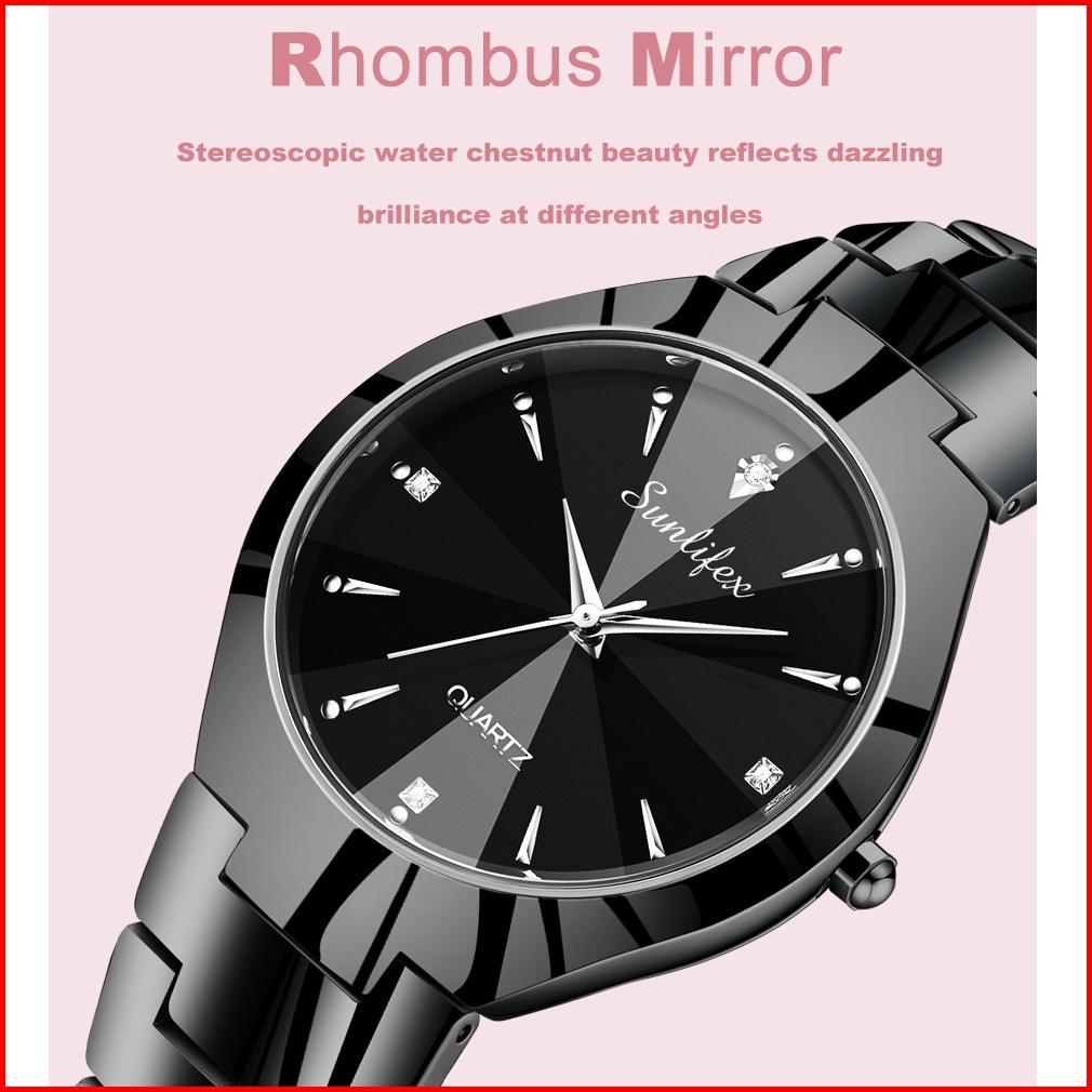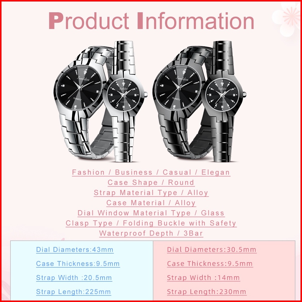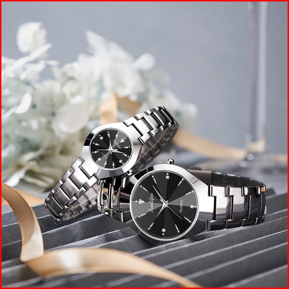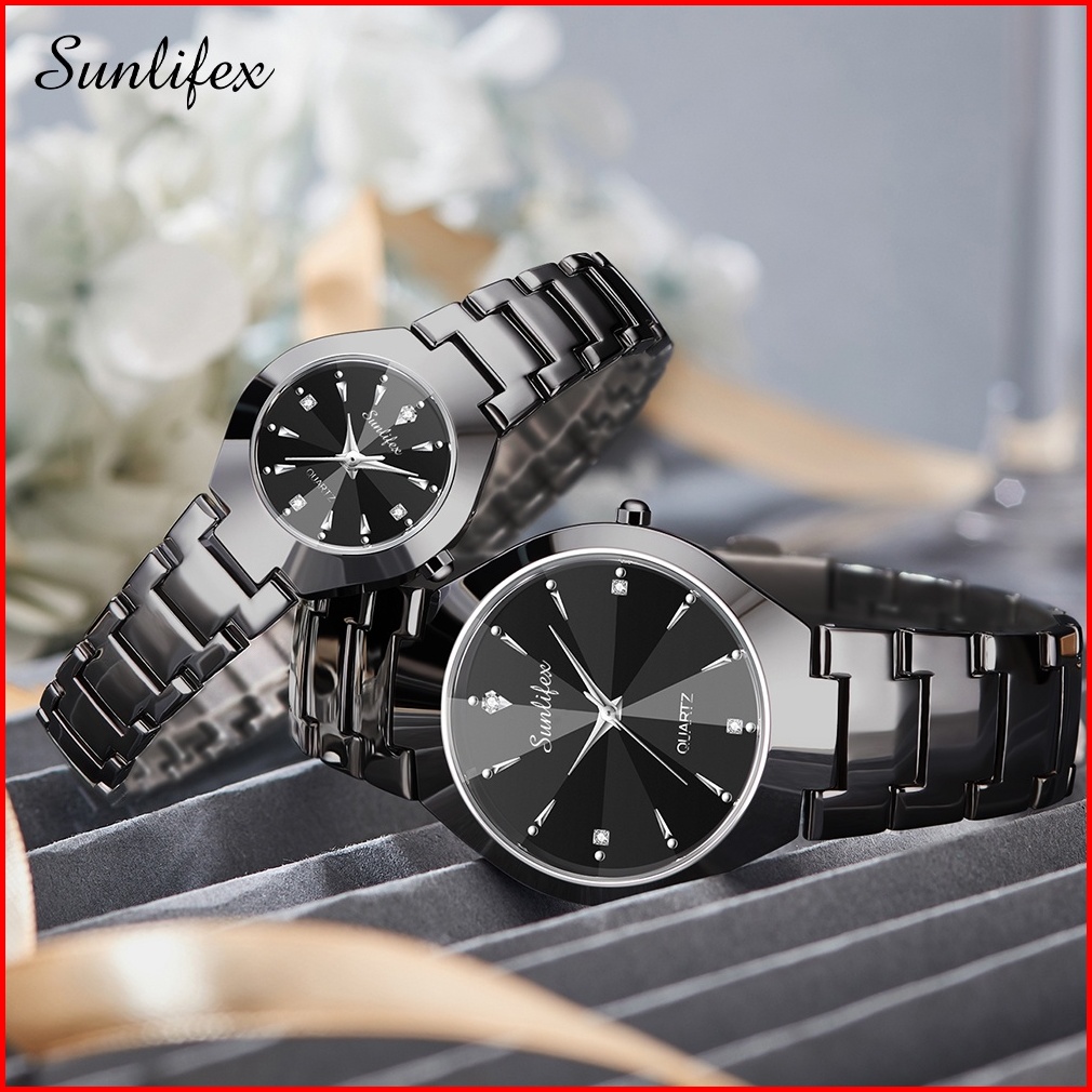 Sunlifex Jam Tangan Couple 9090-m Sl9090-w Stainless Steel Berlian Anti Air Analog Bisnis Kuarsa Jam Tangan Wanita Pria