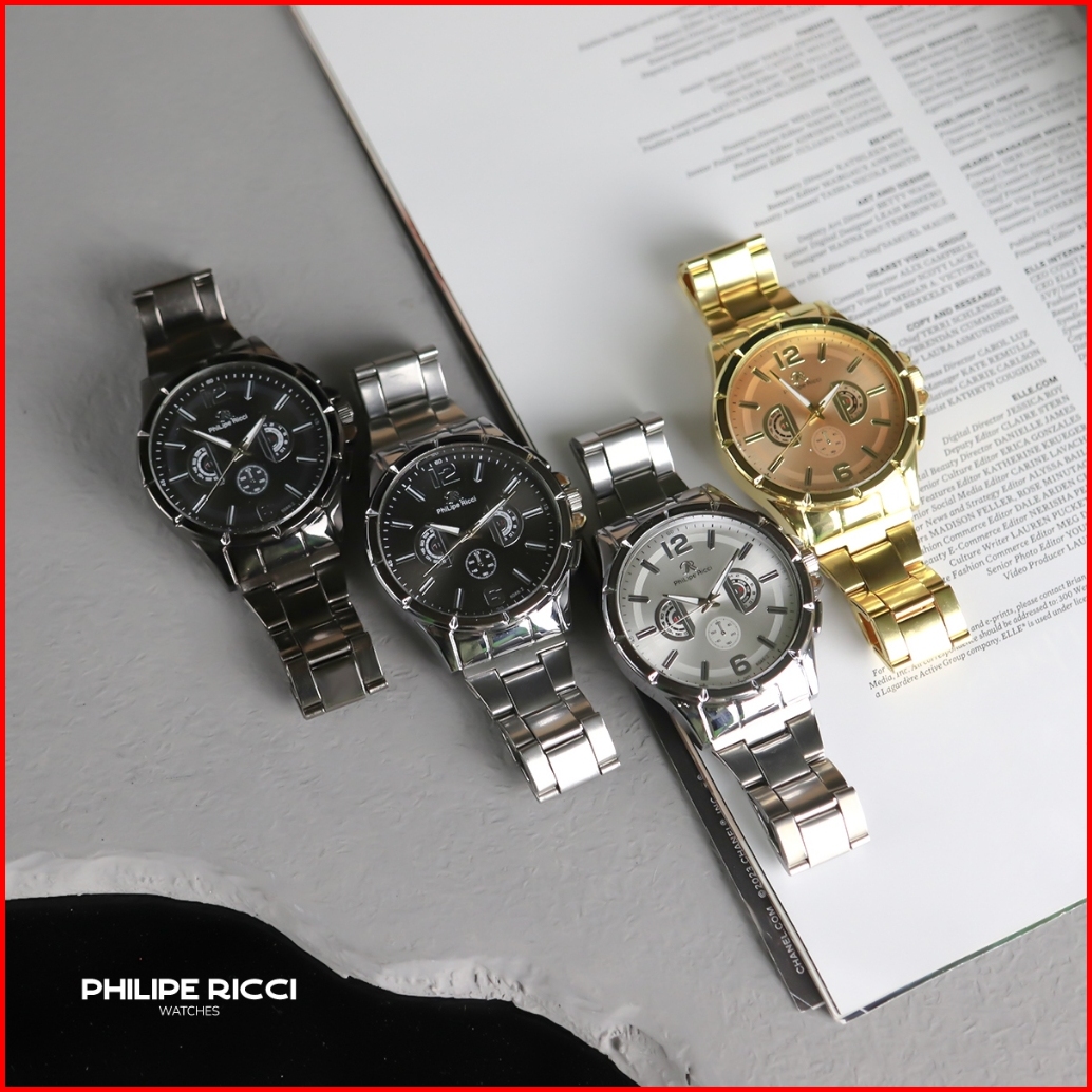 Philipe Ricci Jam Tangan Pria Rantai Analog Model Elegan Terbaru Kasual Modern 6048b Business Men Watches Free Box