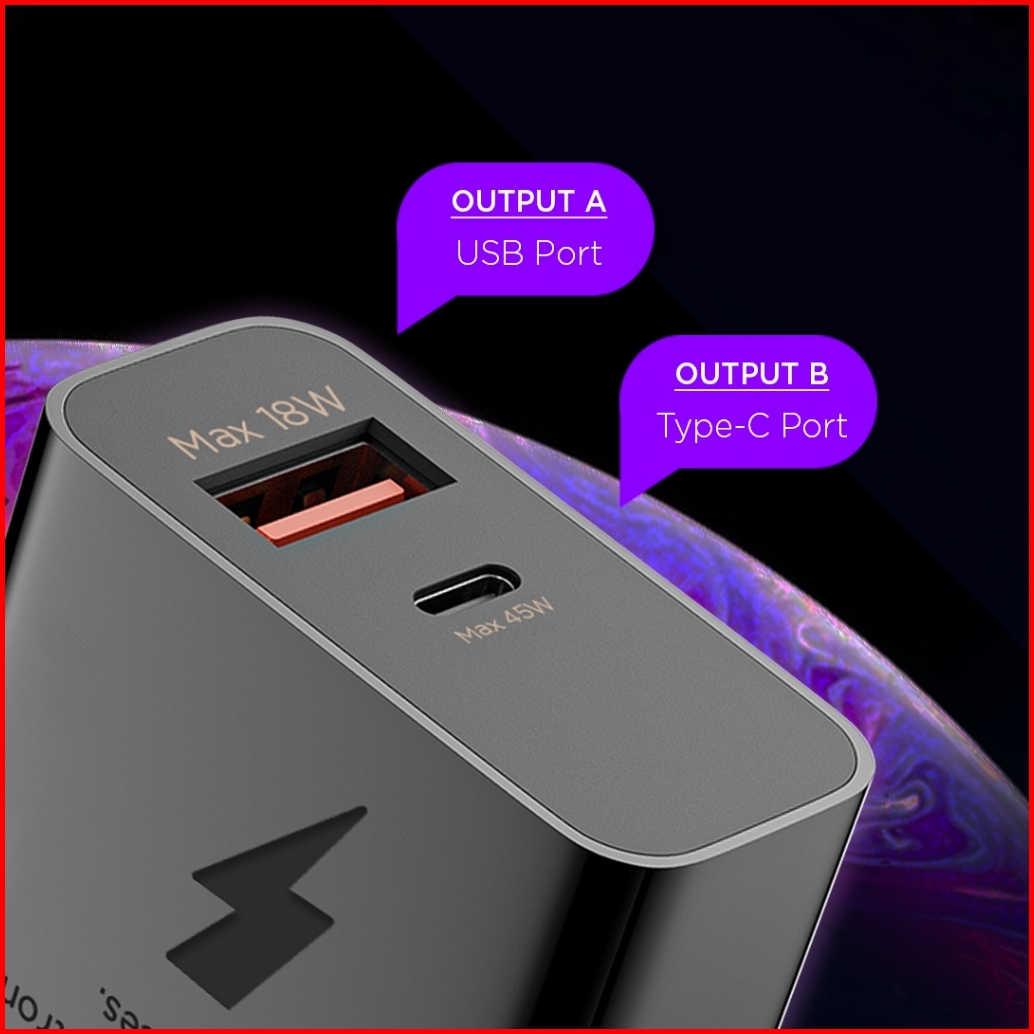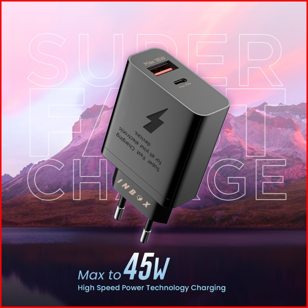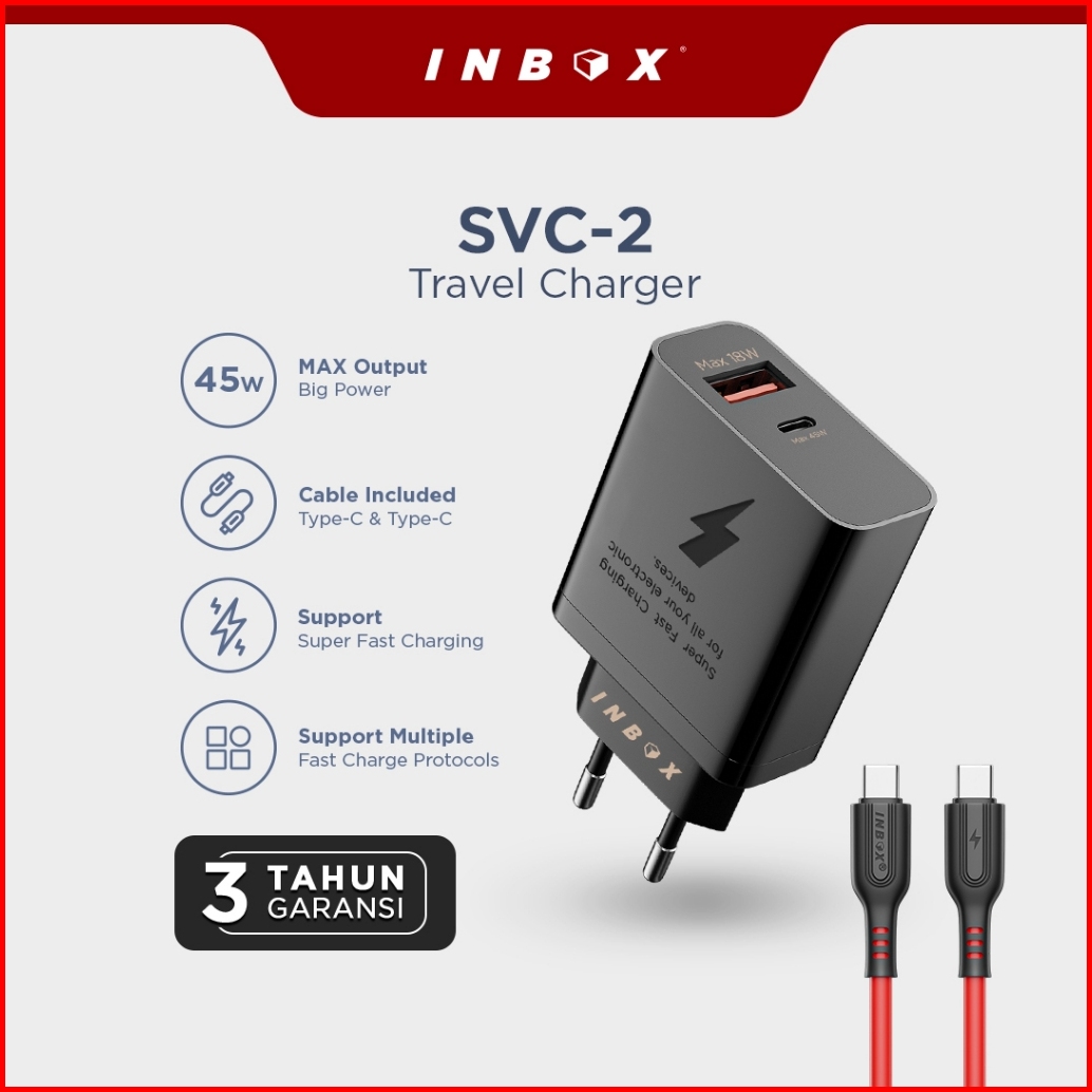 Inbox Kepala Charger Svc-2 45w Super Fast Charging Dual Port Usb Type C - Adaptor Dan Kabel Data Type C