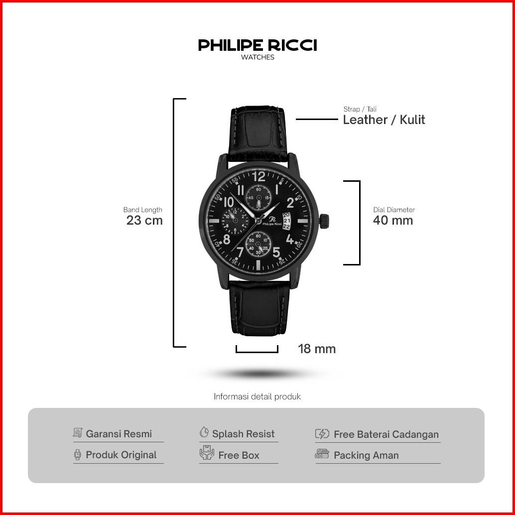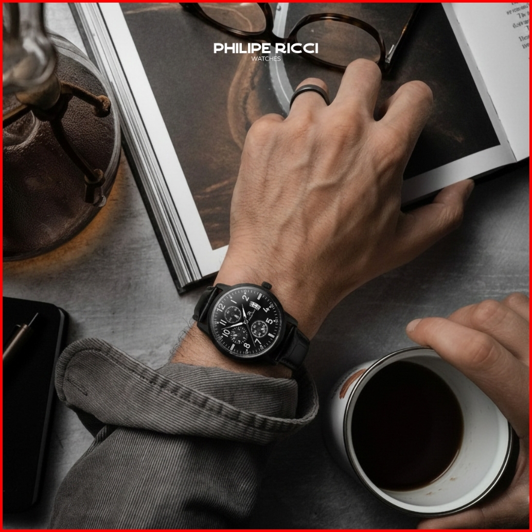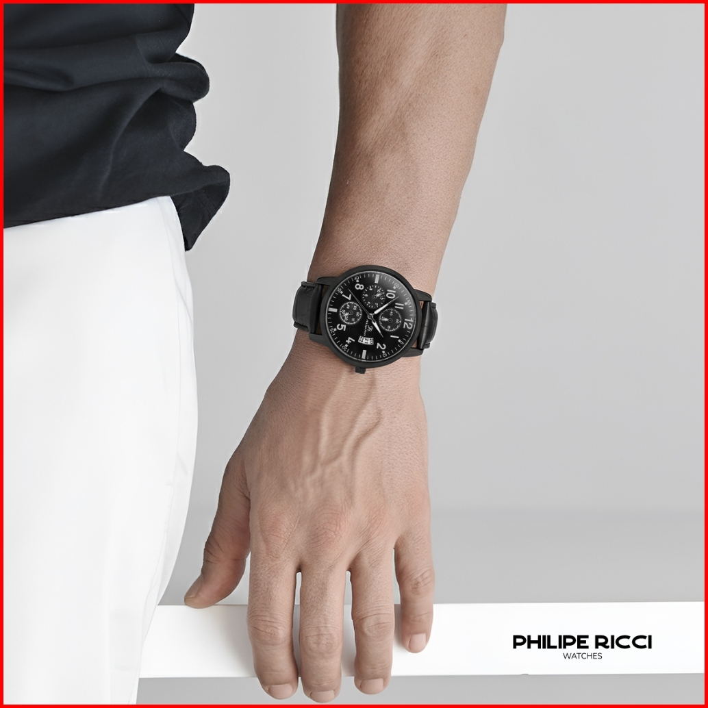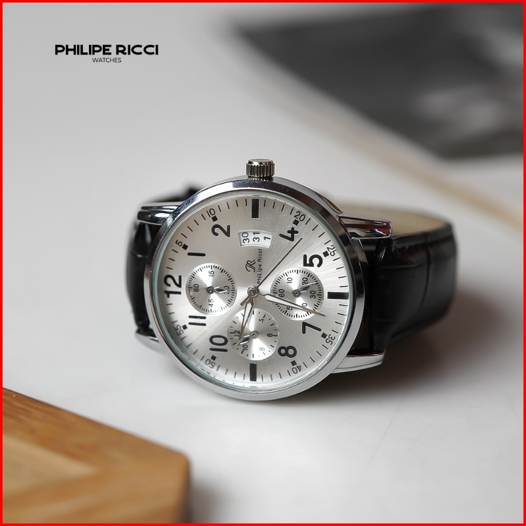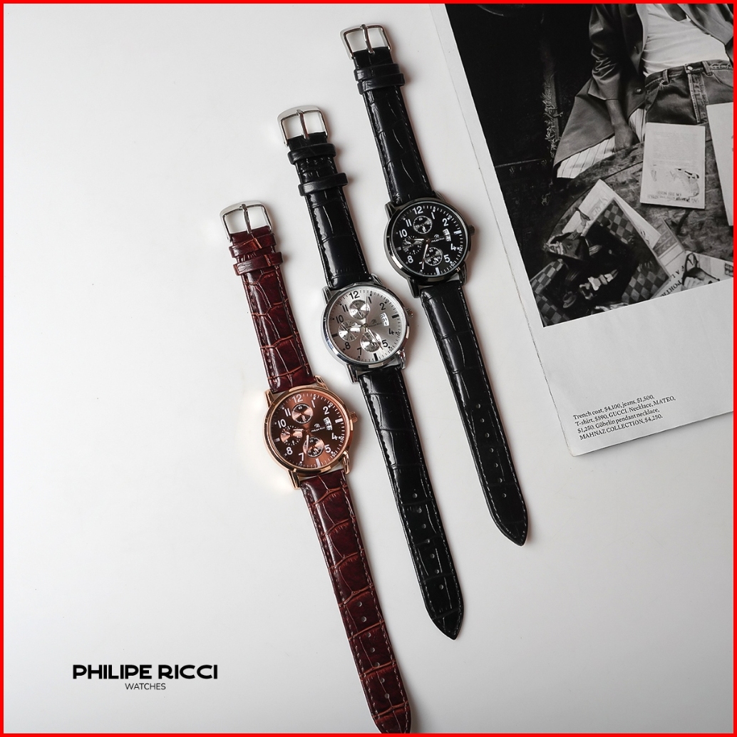Philipe Ricci Jam Tangan Pria Kulit Terbaru Analog Quartz Strap Leather Dial Bulat Besar Gaya Modern Terbaru 4234 Man