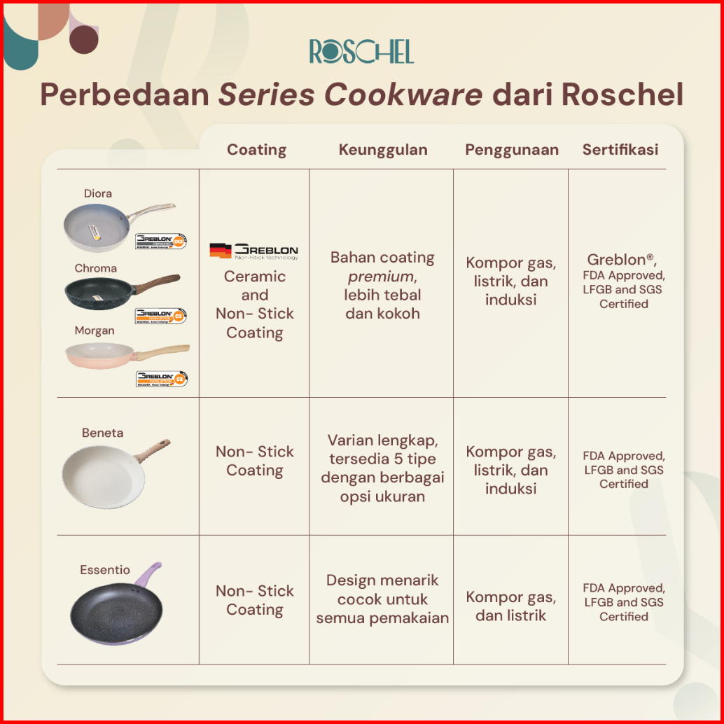 Roschel Morgan Non-stick Frypan 22 Cm Greblon C2 German Coating Panci Wajan Penggorengan Fry Pan Anti Lengket Induksi Pi