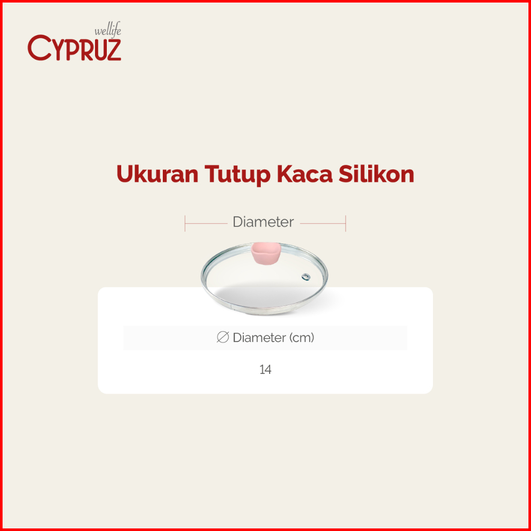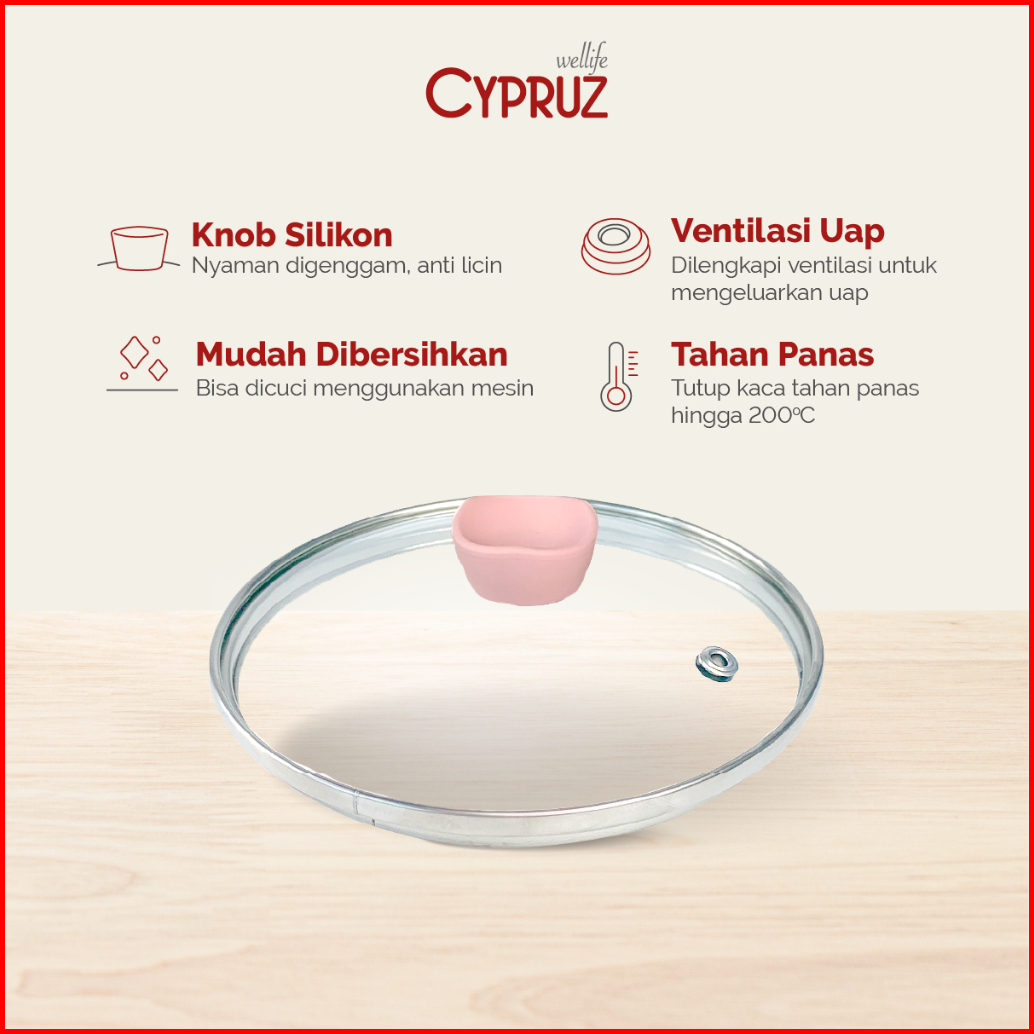 Cypruz Tutup Panci Stainless Kaca Gagang Kayu Bakelite 14 Cm