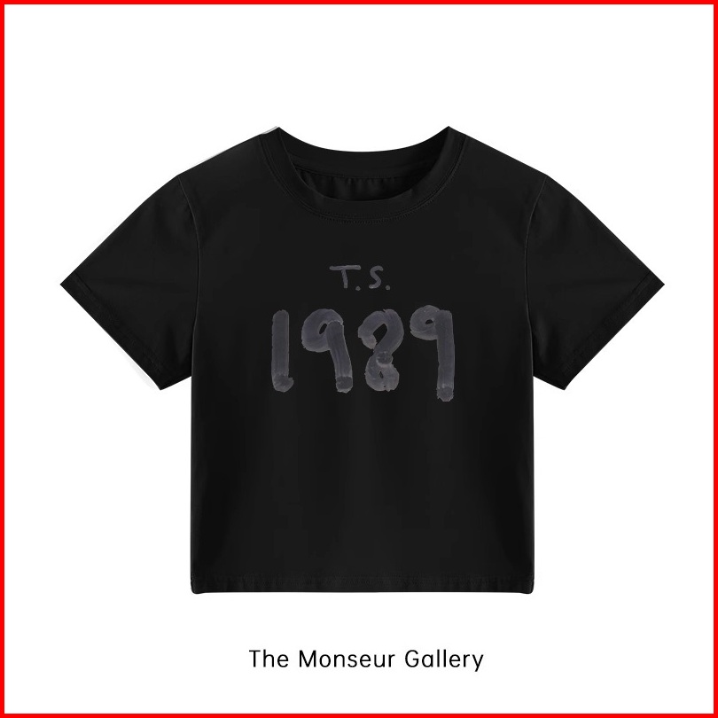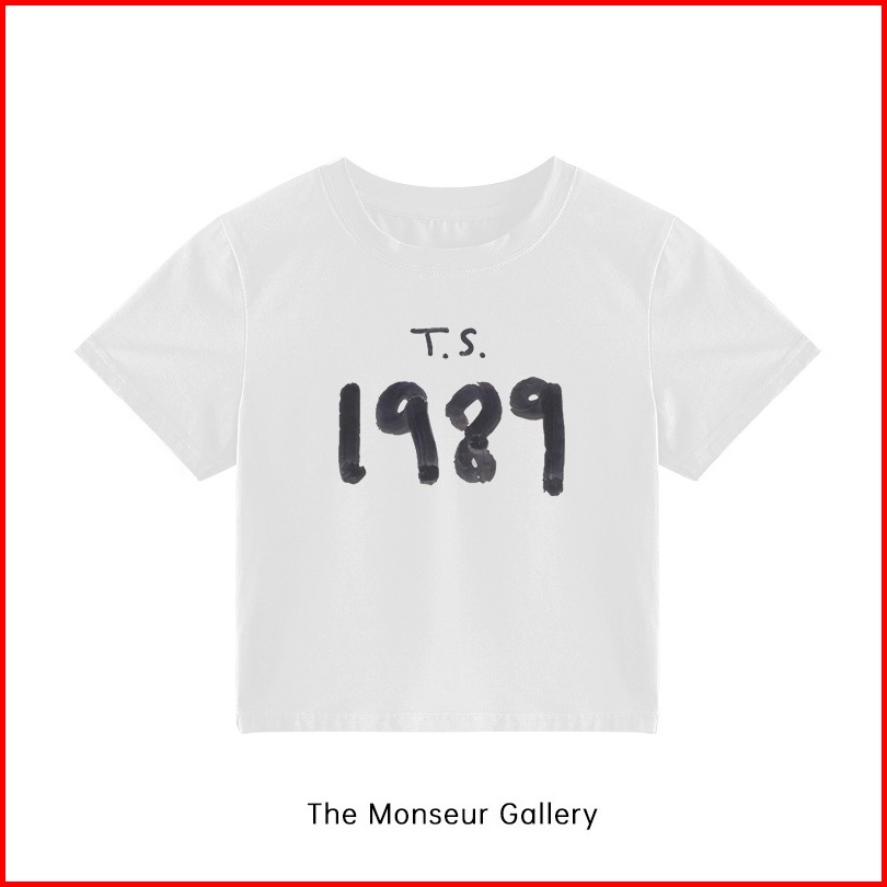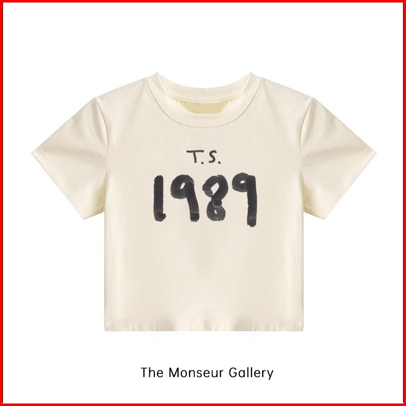 The Monseur Gallery Kaos Crop Wanita Slimfit T.s. 1989 Baju Croptee Cream Korea