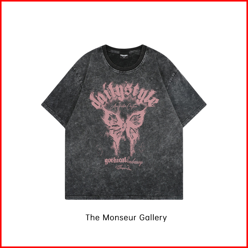 The Monseur Gallery T-shirt Washed Oversize Butterfly Street Style Kaos Wanita Hitam