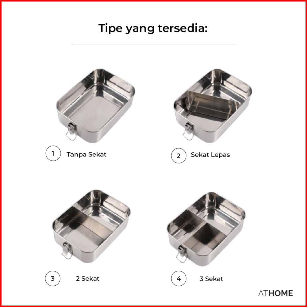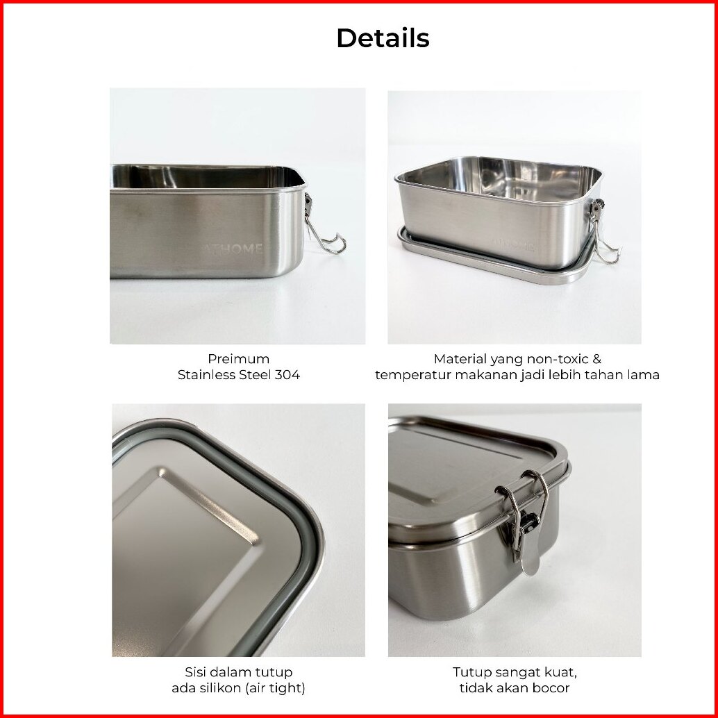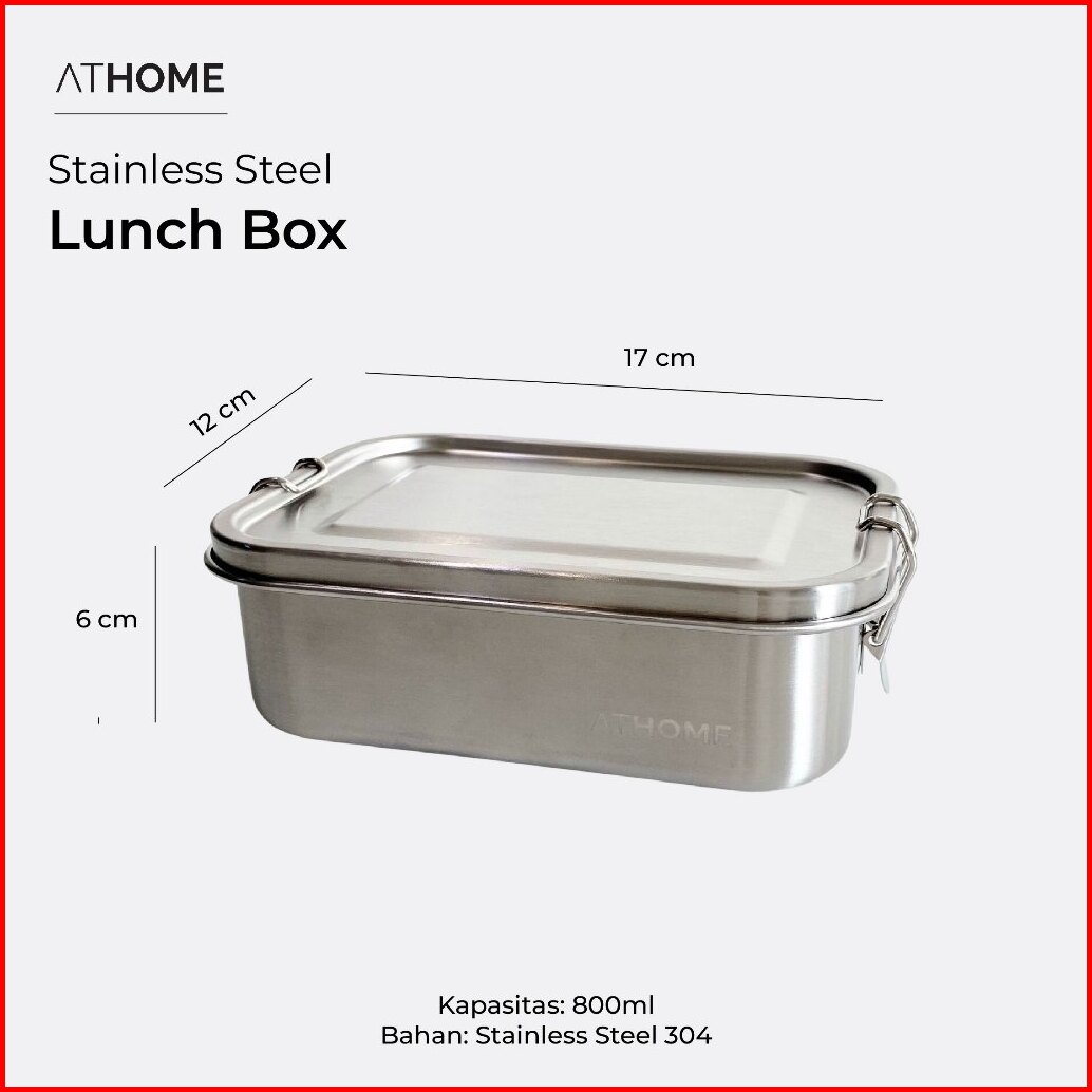 Athome Stainless Steel Lunch Box 800ml Kotak Makan Sekat Anti Tumpah Tempat Bekal Leakproof