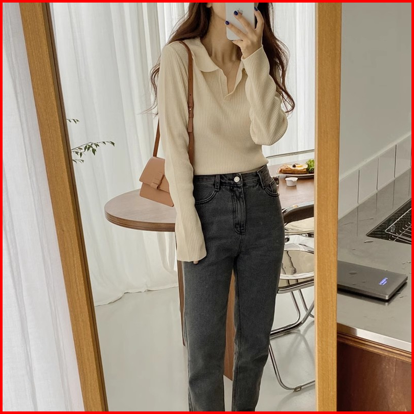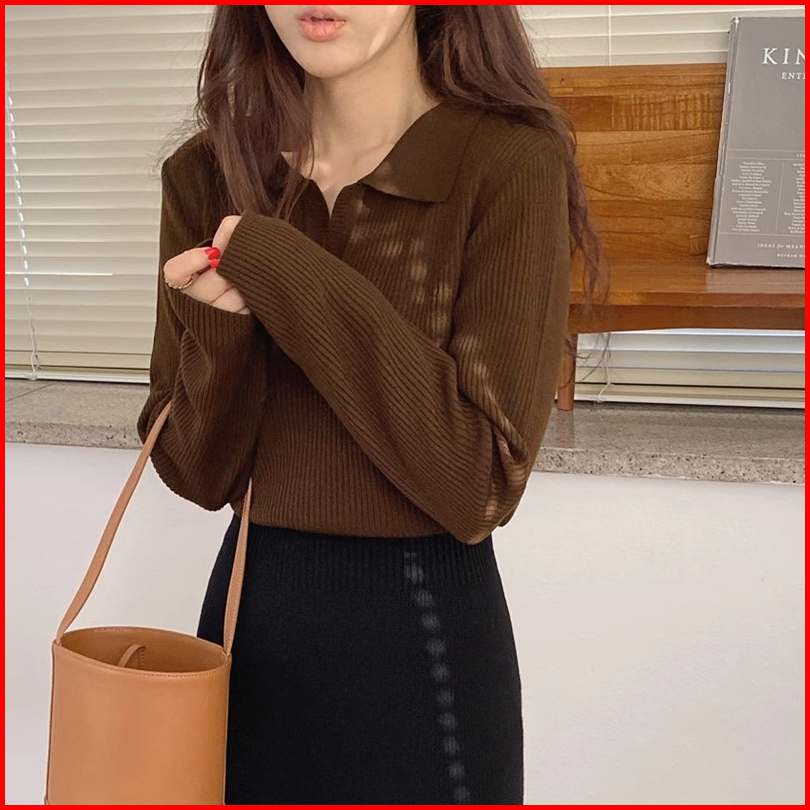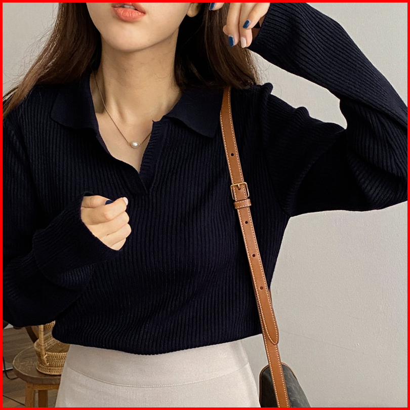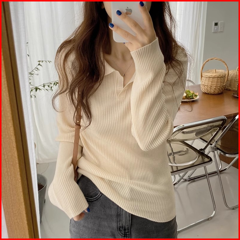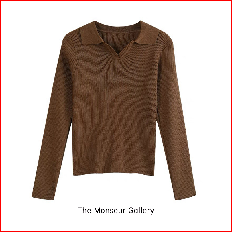 The Monseur Gallery Kaos Rajut Polos Wanita Lengan Panjang Korean Style T-shirt Knit
