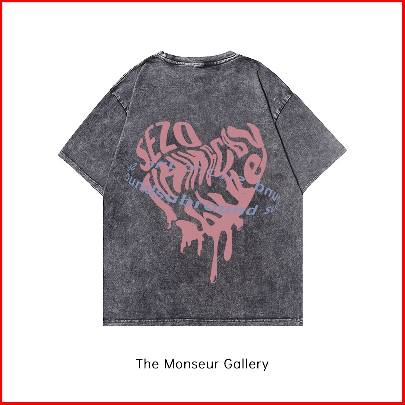 The Monseur Gallery T-shirt Washed Oversize Fashion Heart Graffiti Kaos Hitam A0518