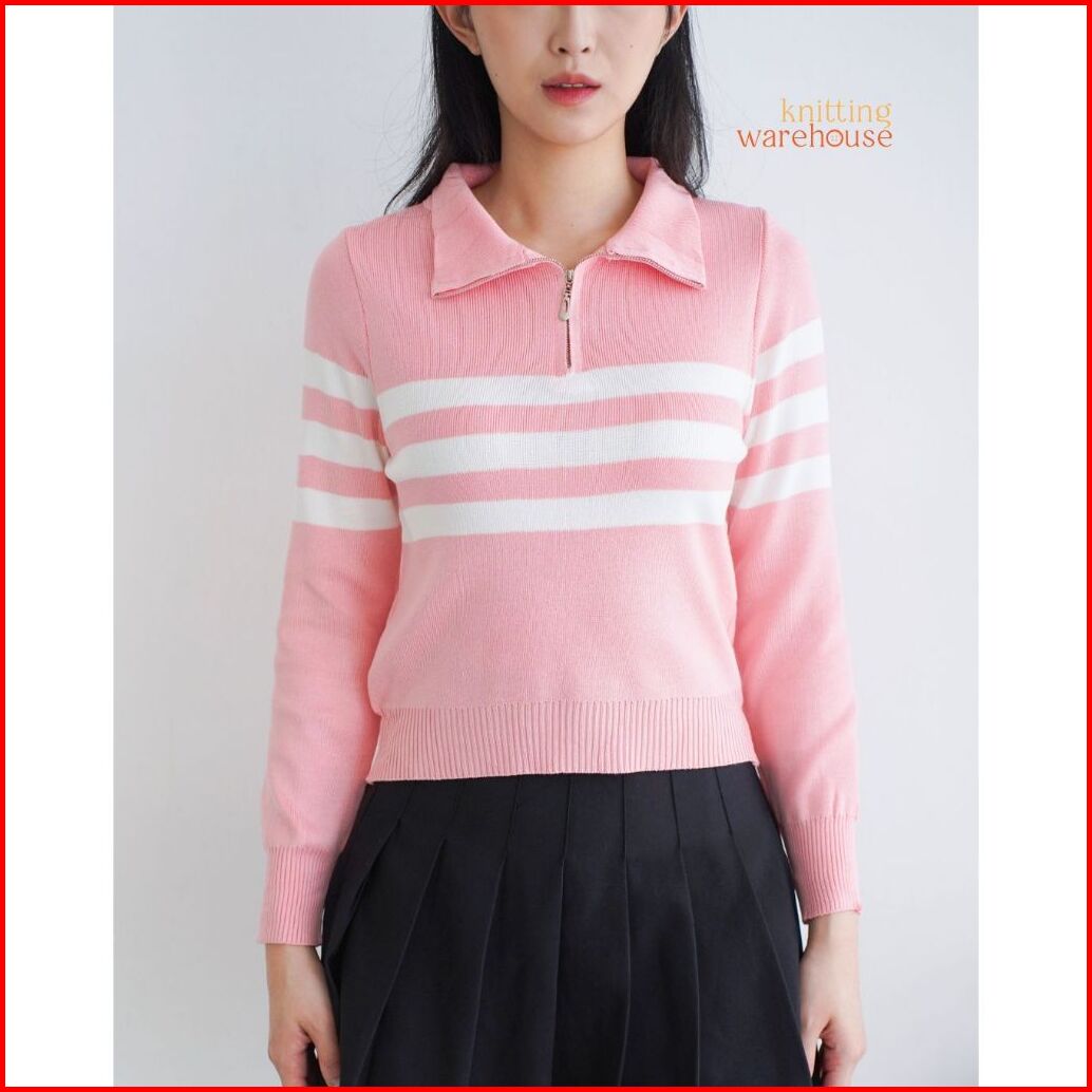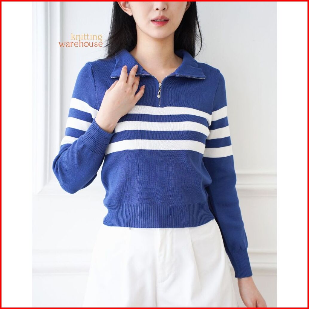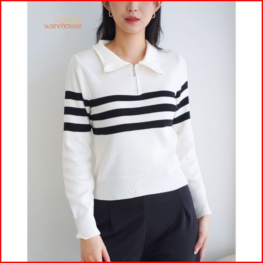 Shinly Sweater Zipper Stripe - Atasan Wanita Rajut Tm