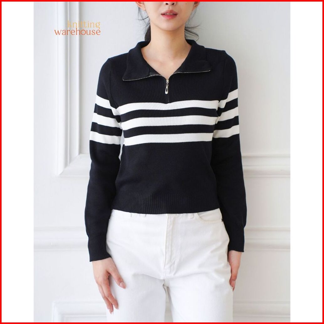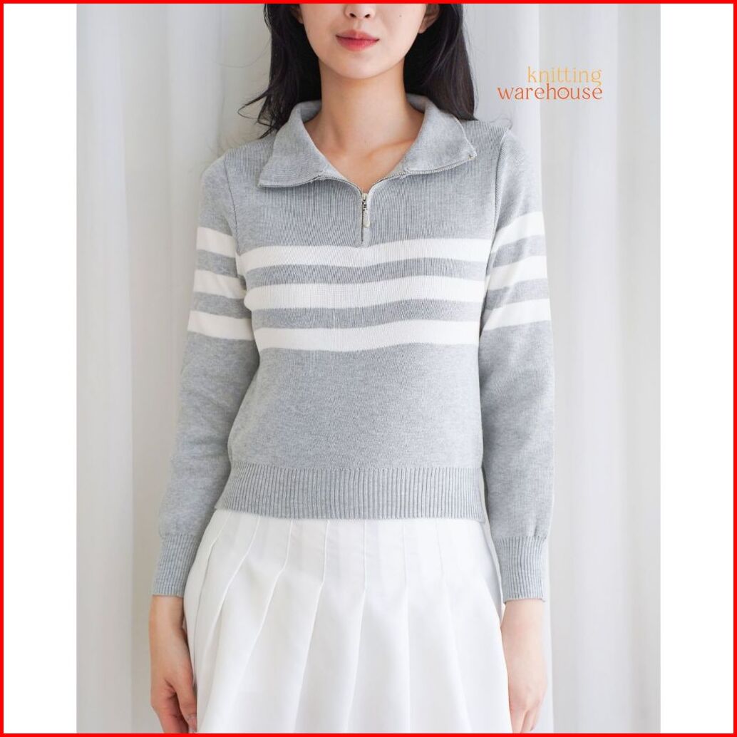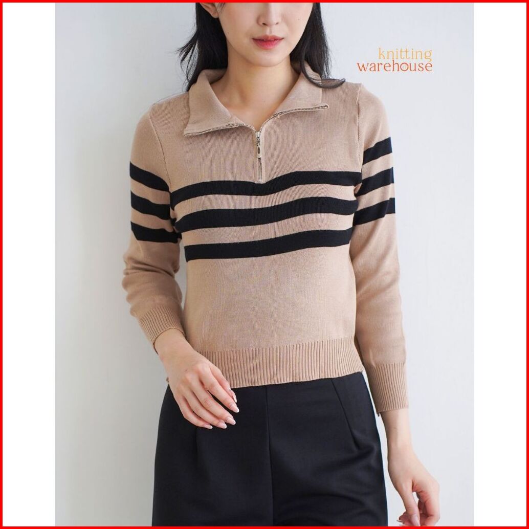 Shinly Sweater Zipper Stripe - Atasan Wanita Rajut Tm