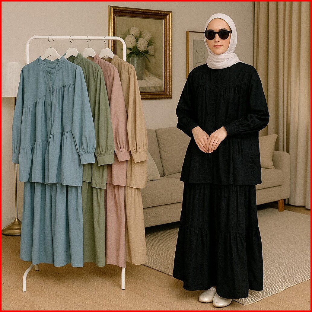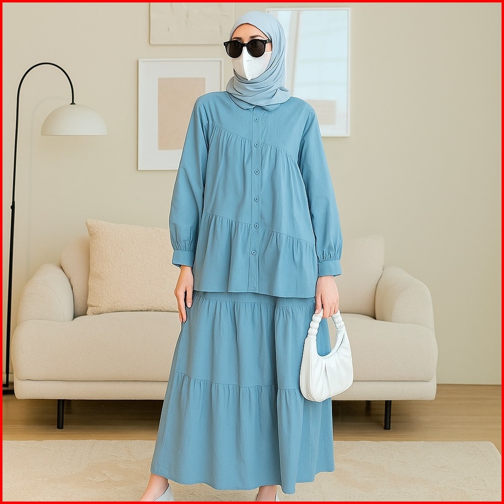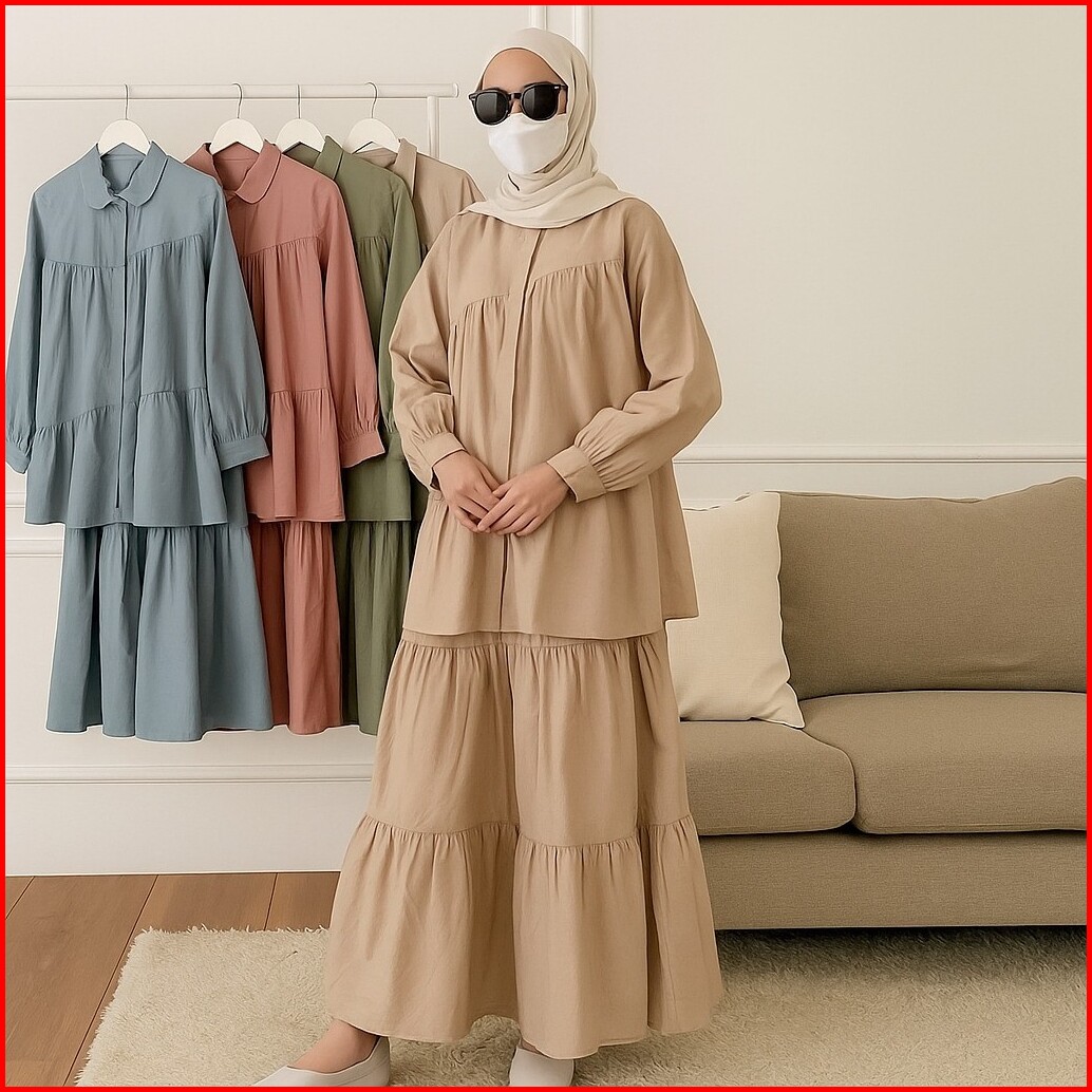 Vallina Outfit - Caterine Set 2in1 Setelan Rok Wanita Muslim Remaja Linen Rami Premium Kekinian Terbaru