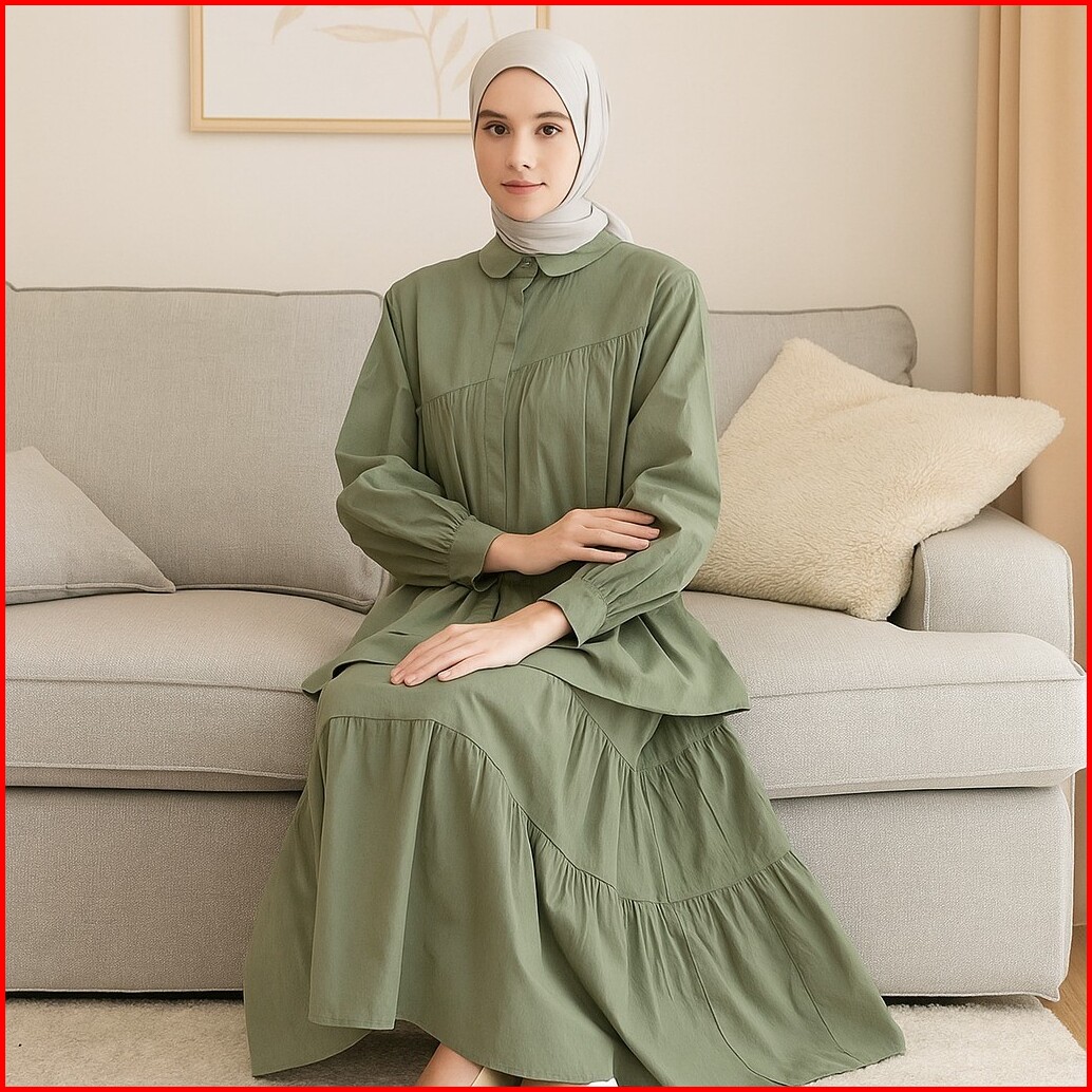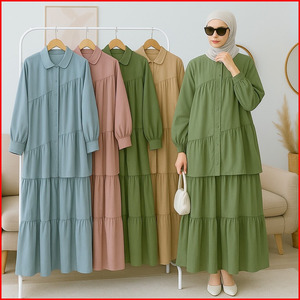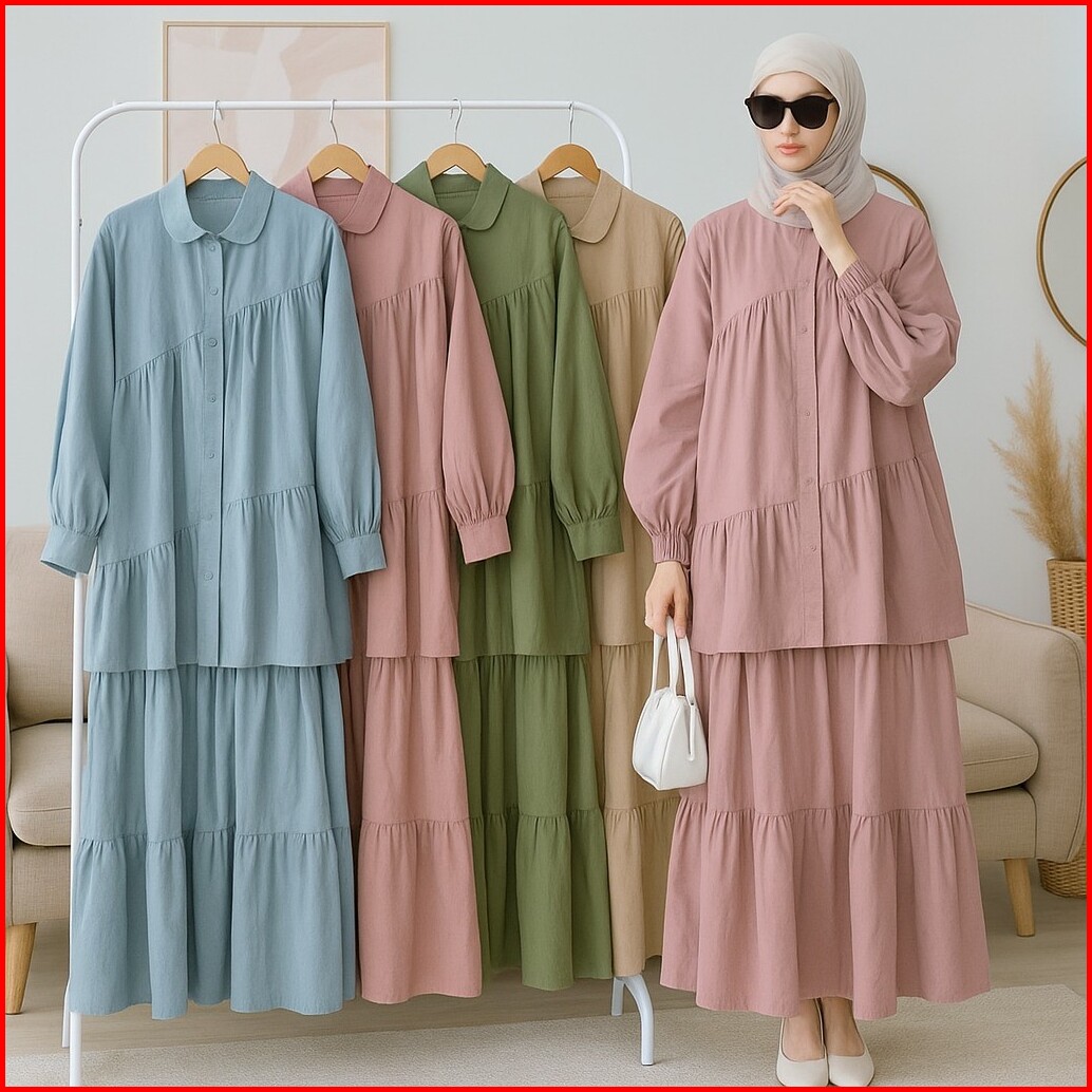 Vallina Outfit - Caterine Set 2in1 Setelan Rok Wanita Muslim Remaja Linen Rami Premium Kekinian Terbaru