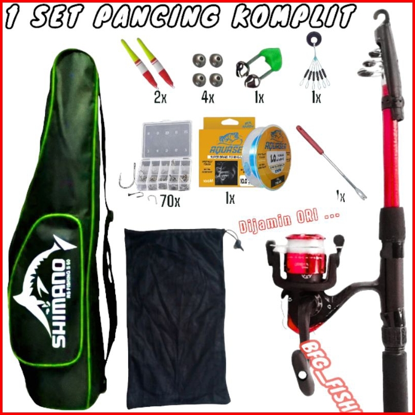 1 Set Alat Pancing 1b 5bb - Joran Reel Tas Senar Kail Pelampung Dll