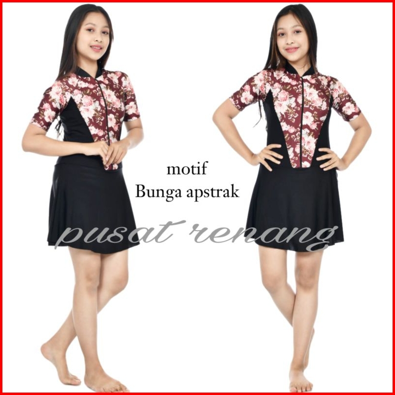 Baju Renang Abg-remaja Usia 10-15 Tahun Baju Renang Dv-rok Abg-remaja Tangan Pendek Motif