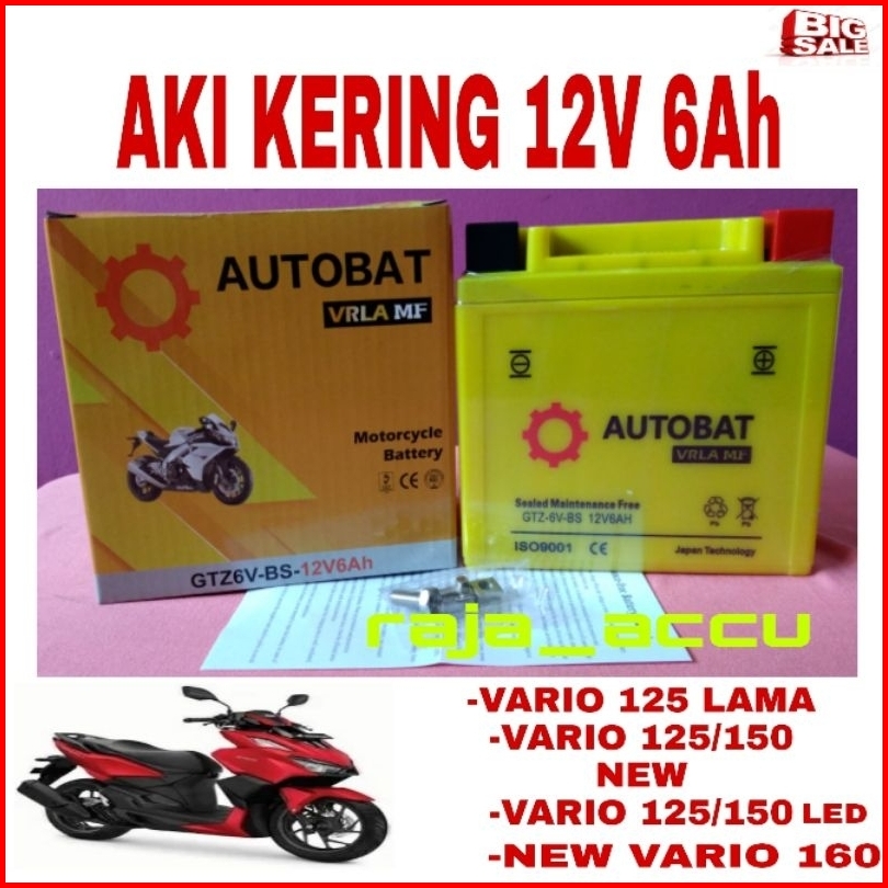 Aki Motor Vario 125 Vario 150 Led Satria Fu Klx 150 Cb 15o Vario 160 Abs N Max New Autobat Gtz6v Ytz7s 12v 6ah