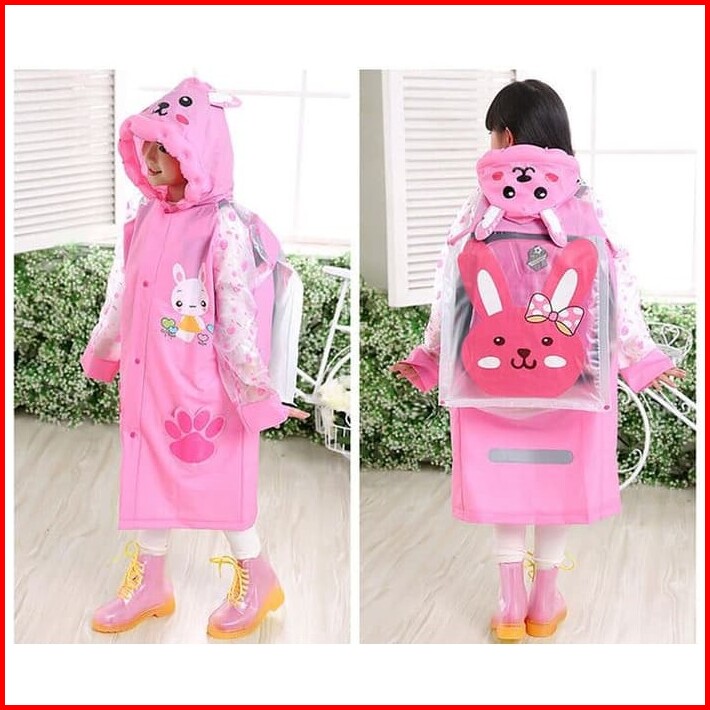 Jas Hujan Anak Motif Pink Rabbit Dengan Ruang Ransel