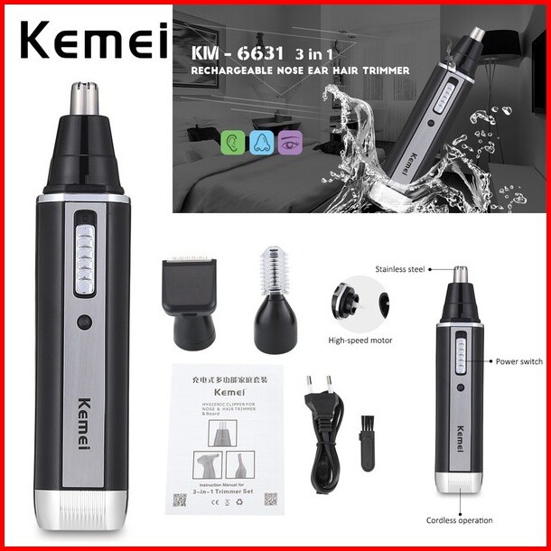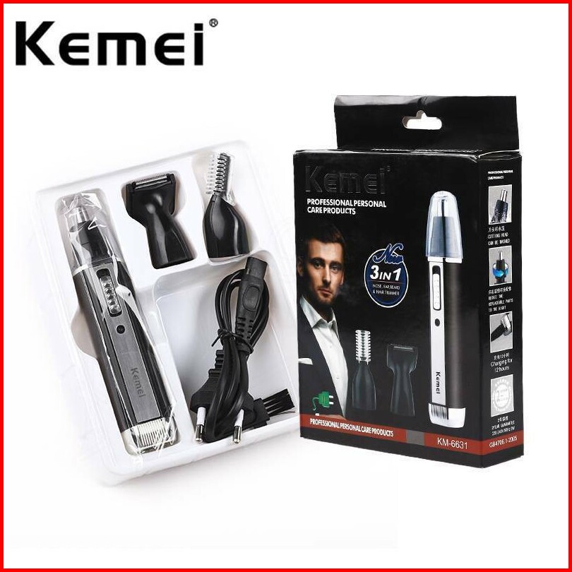 Kemei Alat Cukur Km-6631 Mesin Pencukur Kumis Jenggot Dan Bulu Hidung Sistem Cas