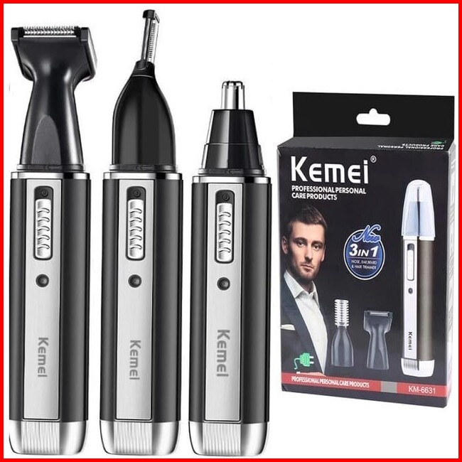 Kemei Alat Cukur Elektrik Jenggot Kumis Bulu Hidung 3 In 1