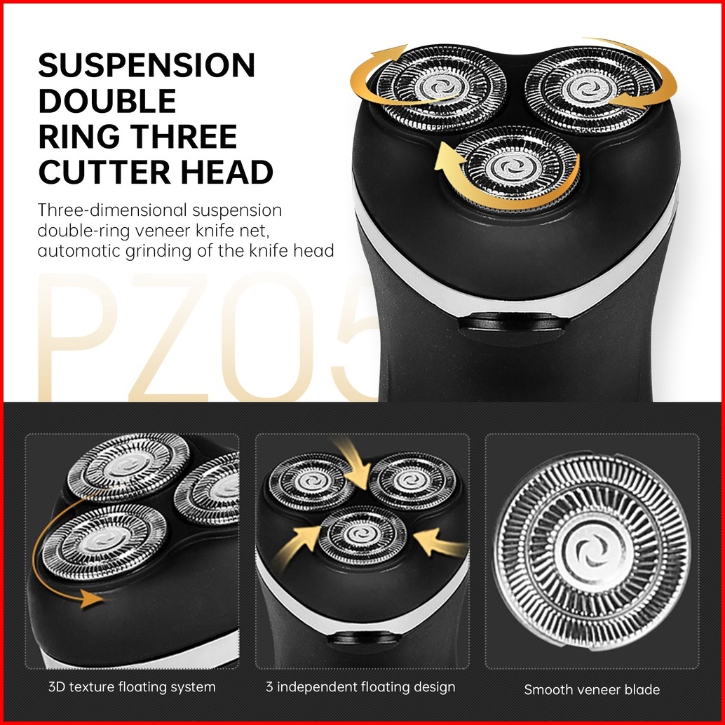 Perfin Pf25 Alat Cukur Rambut Elektrik 3d Cukur Listrik Travel Shaver Pencukur Jenggot-hitam