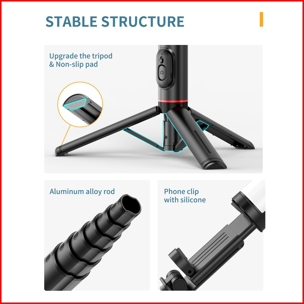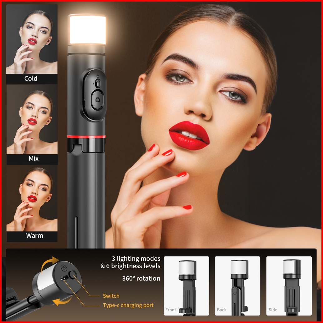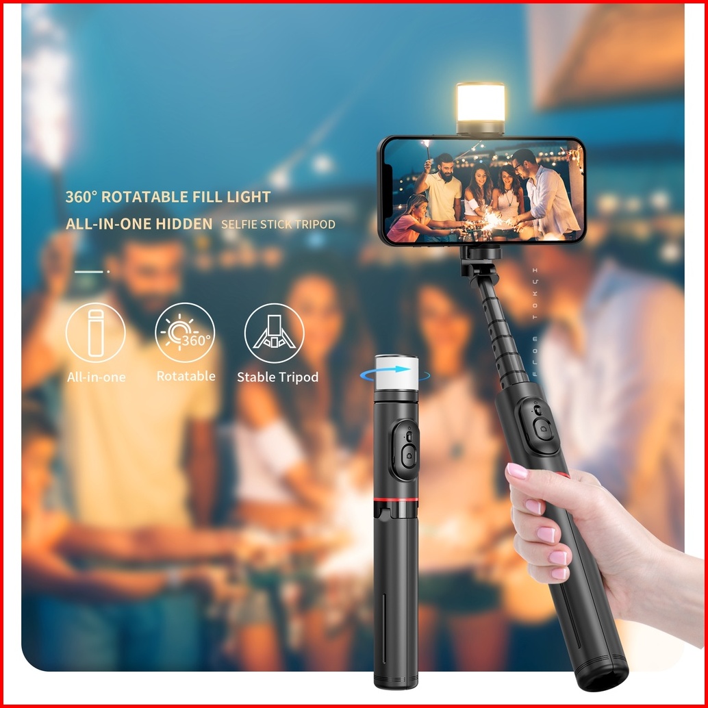 Kiip Mini Selfie Stick Tripod Tongsis Bluetooth Fill Light Handphone