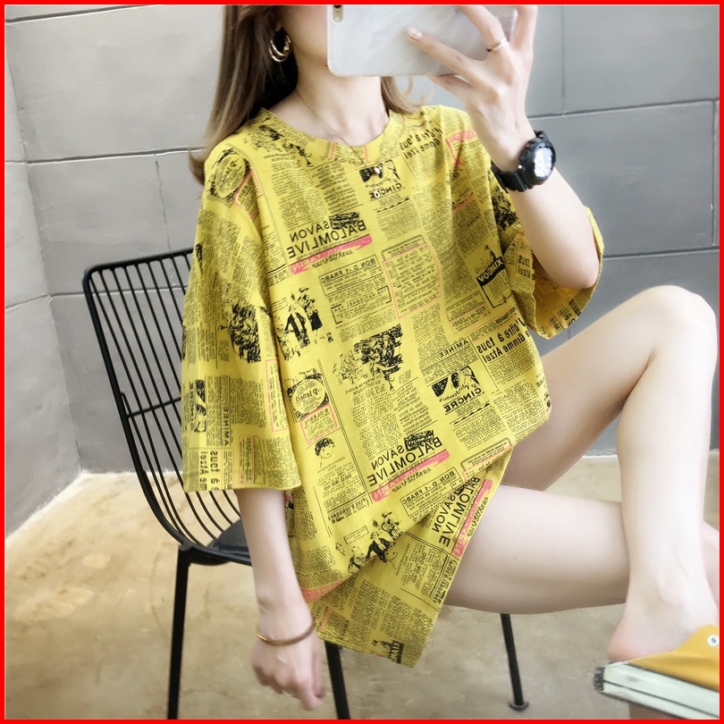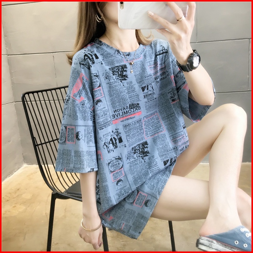 Lizona Kaos Oversize Import Fullprint Newspaper Koran Magazine
