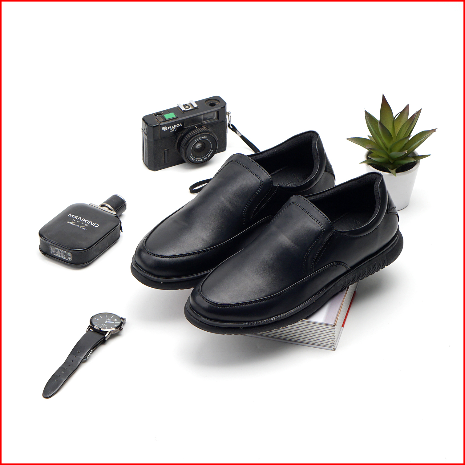 Jyf - Elite Black Sepatu Slip On Pantofel Formal Pria Kulit Kerja Resmi Kuliah Kondangan