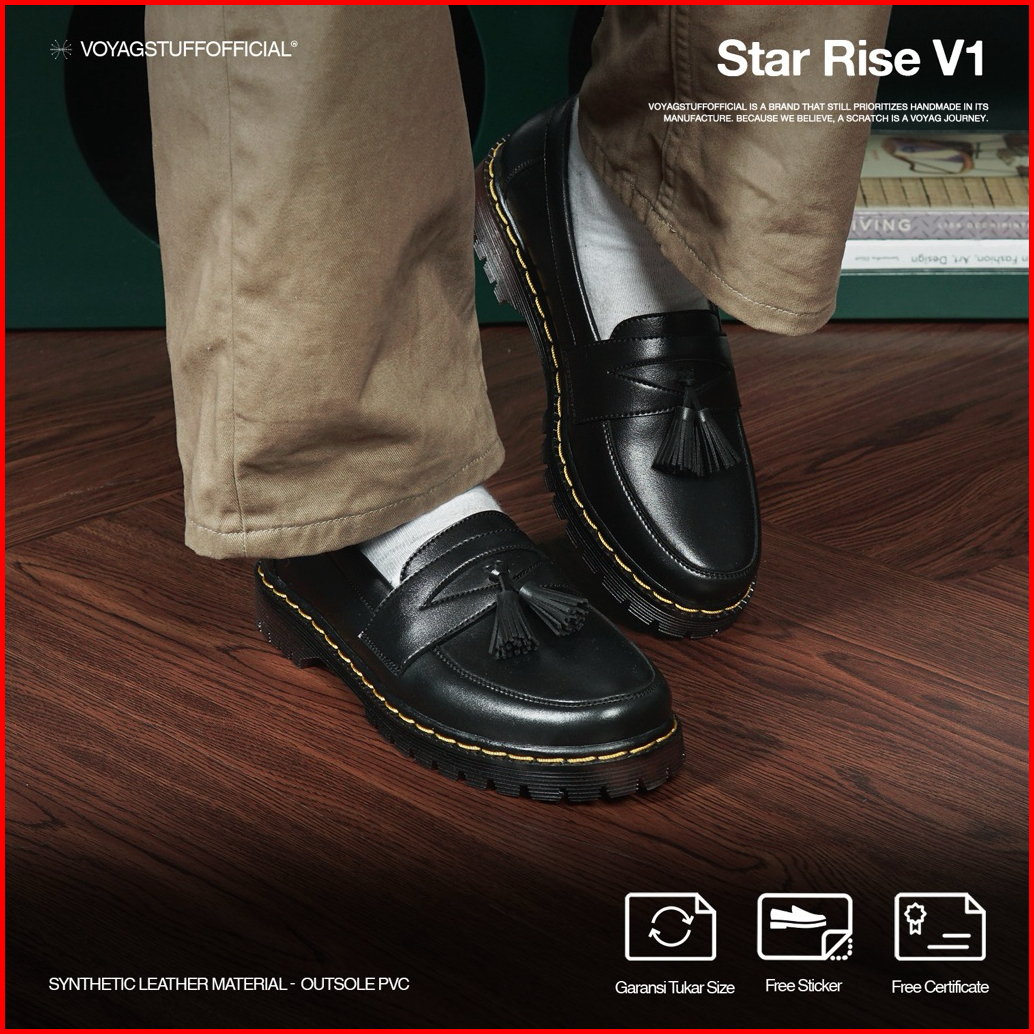 Voyagstuffofficial - Star Rise V1 Sepatu Slip On Pria Penny Loafers Boots Kulit Black