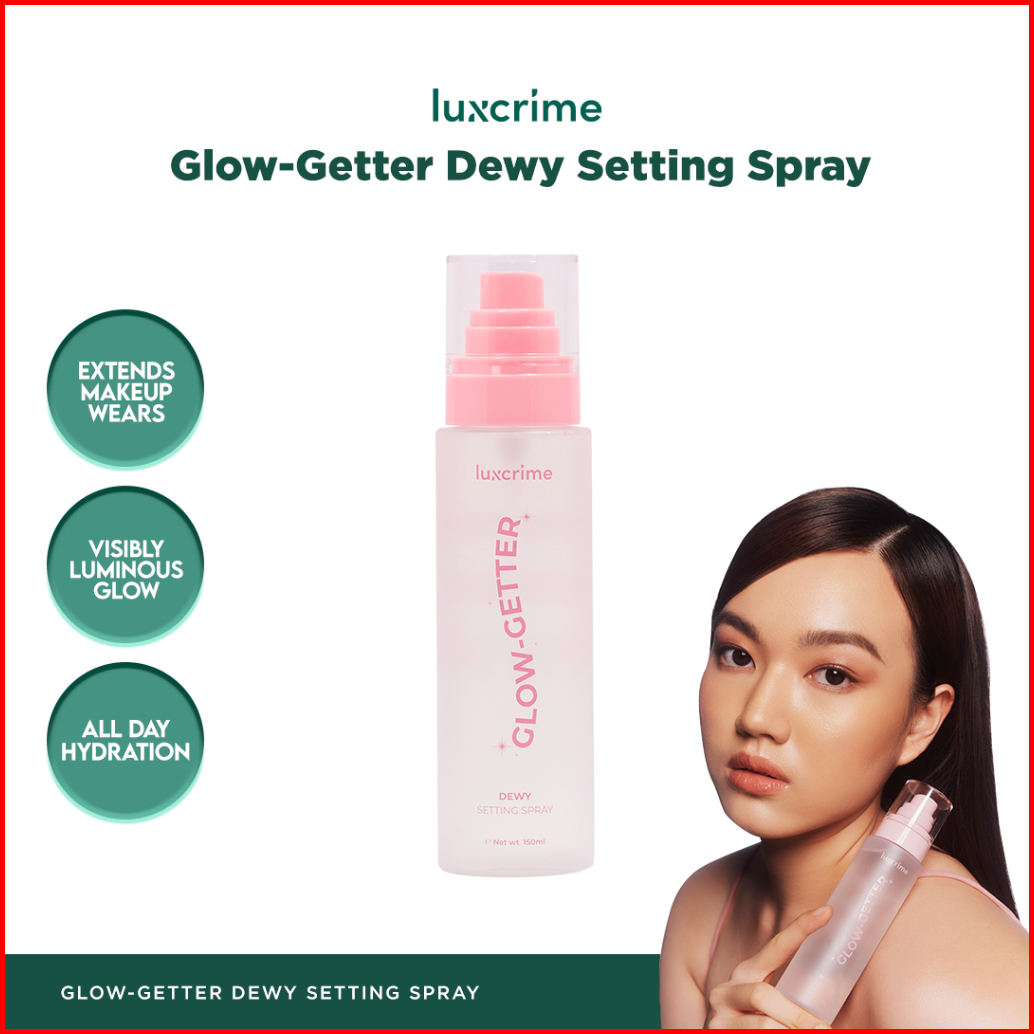 Luxcrime Glow-getter Dewy Setting Spray - Untuk Makeup Tahan Lama Transferproof Melembabkan Kulit Tahan 24 Jam
