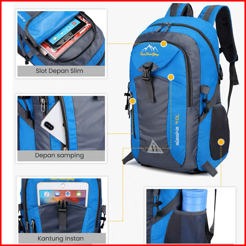 Highland Tas Ransel Pria Gunung 40l Tas Kuliah Sekolah Cowok Tas Punggung Backpack Anti Air Tr109