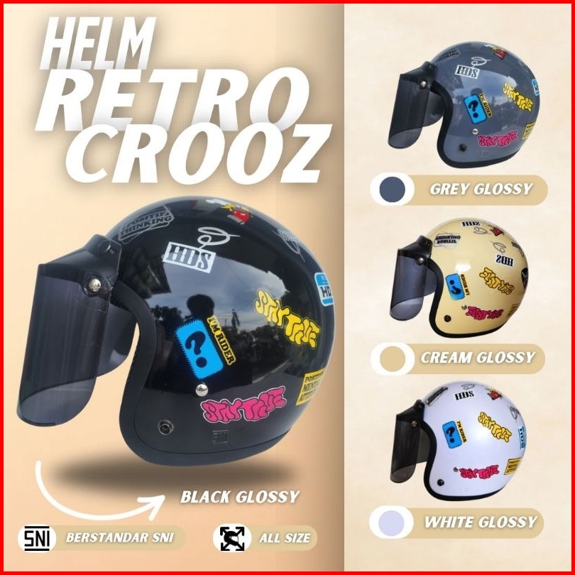 Hds Helmet Helm Bogo Dewasa Retro Classic Original Sni Pria Dan Wanita Crooz Cepol Hijab Hijaber