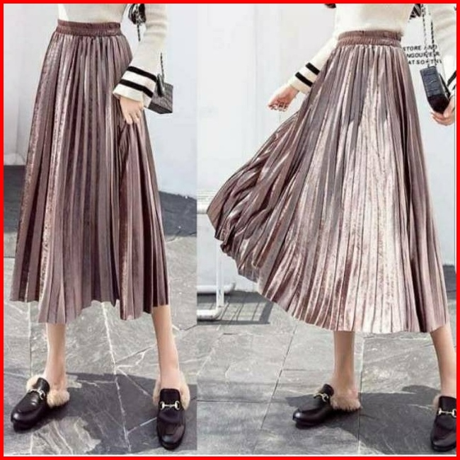 Rok Plisket Bludru Pendek 7 8 Premium Elastis