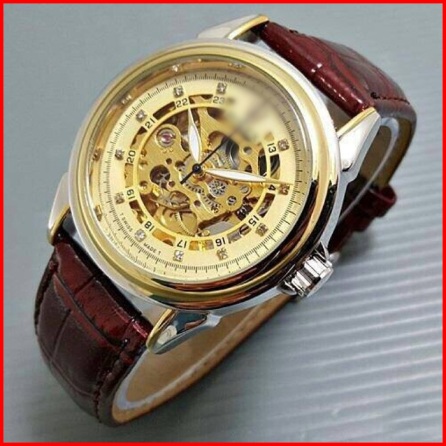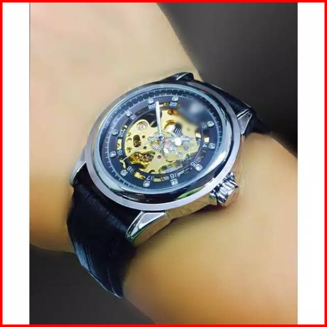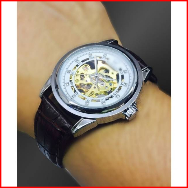 Jam Tangan Skeleton Kulit Classic Otomatis Tanpa Baterai Pria