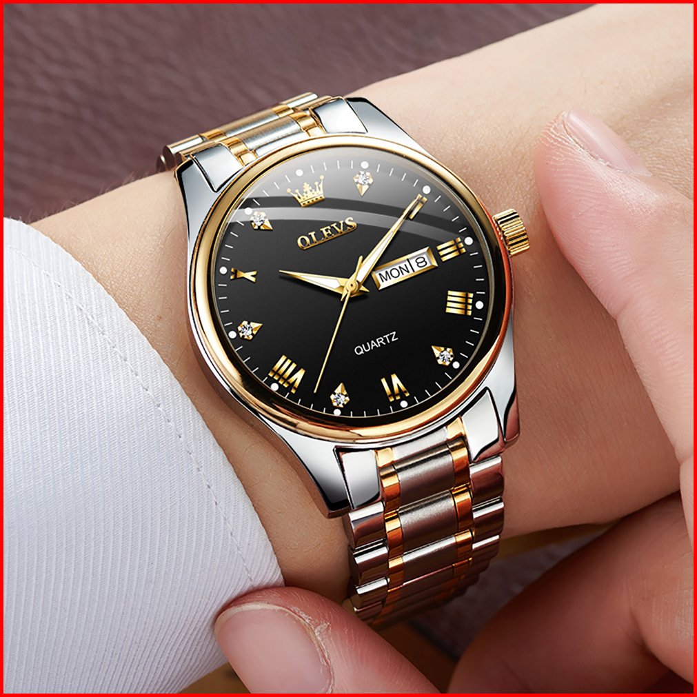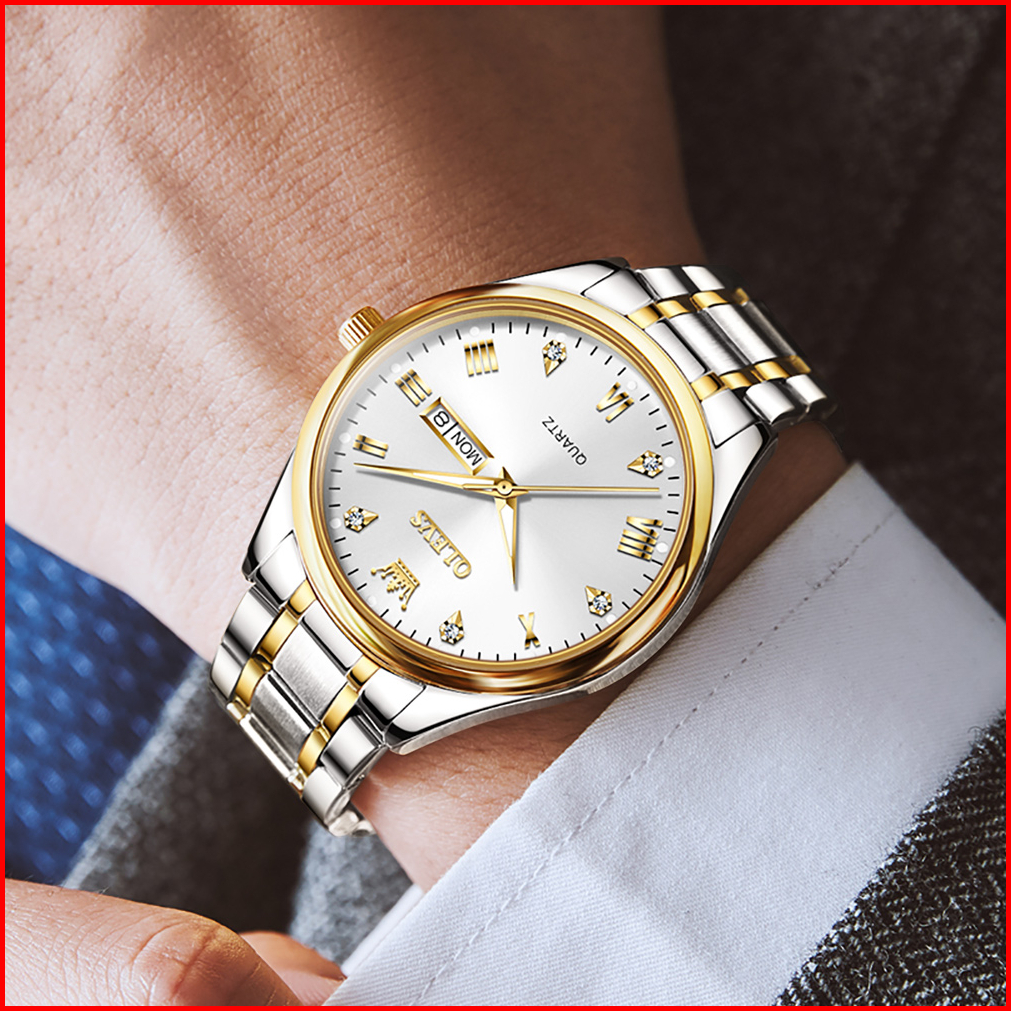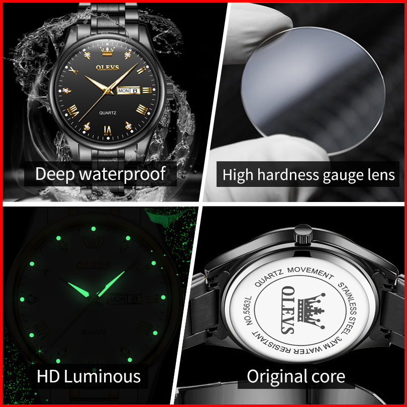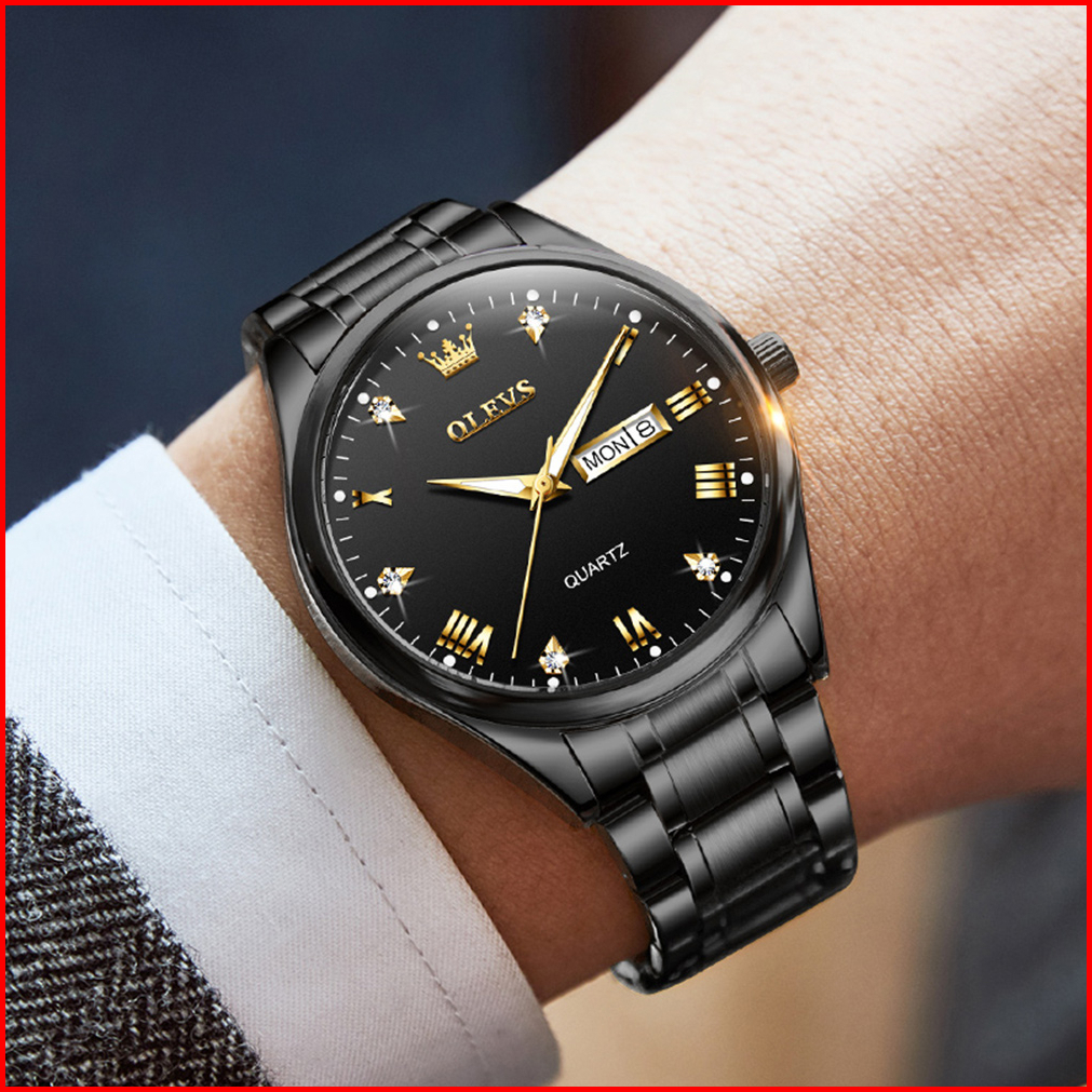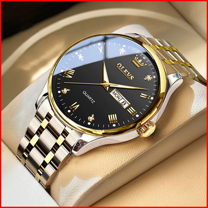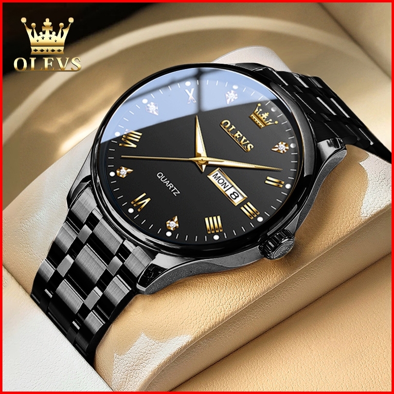 Olevs Jam Tangan Pria Original Anti Air Tahan Led Luxury Analog Keren Stainless Steel Men Watch Hitam Putih