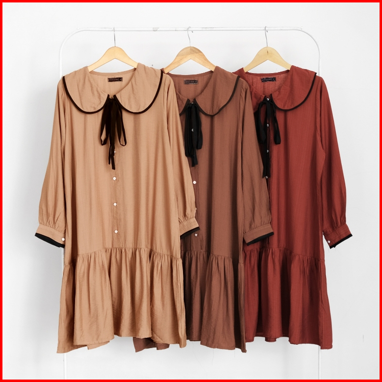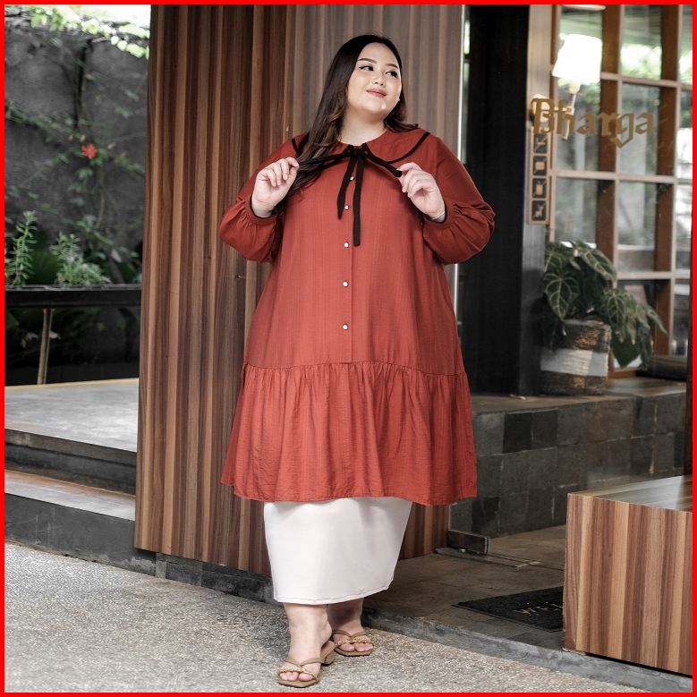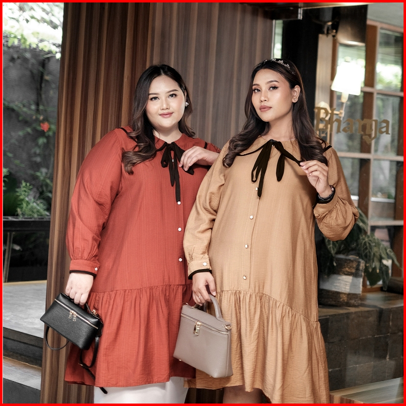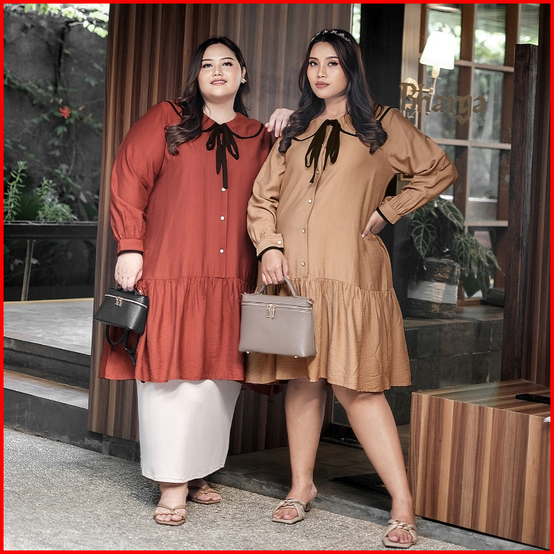 Bigissimo - Amara Tunik Dress Atasan Wanita Tunik Dress Polos Korean Style Big Size Jumbo