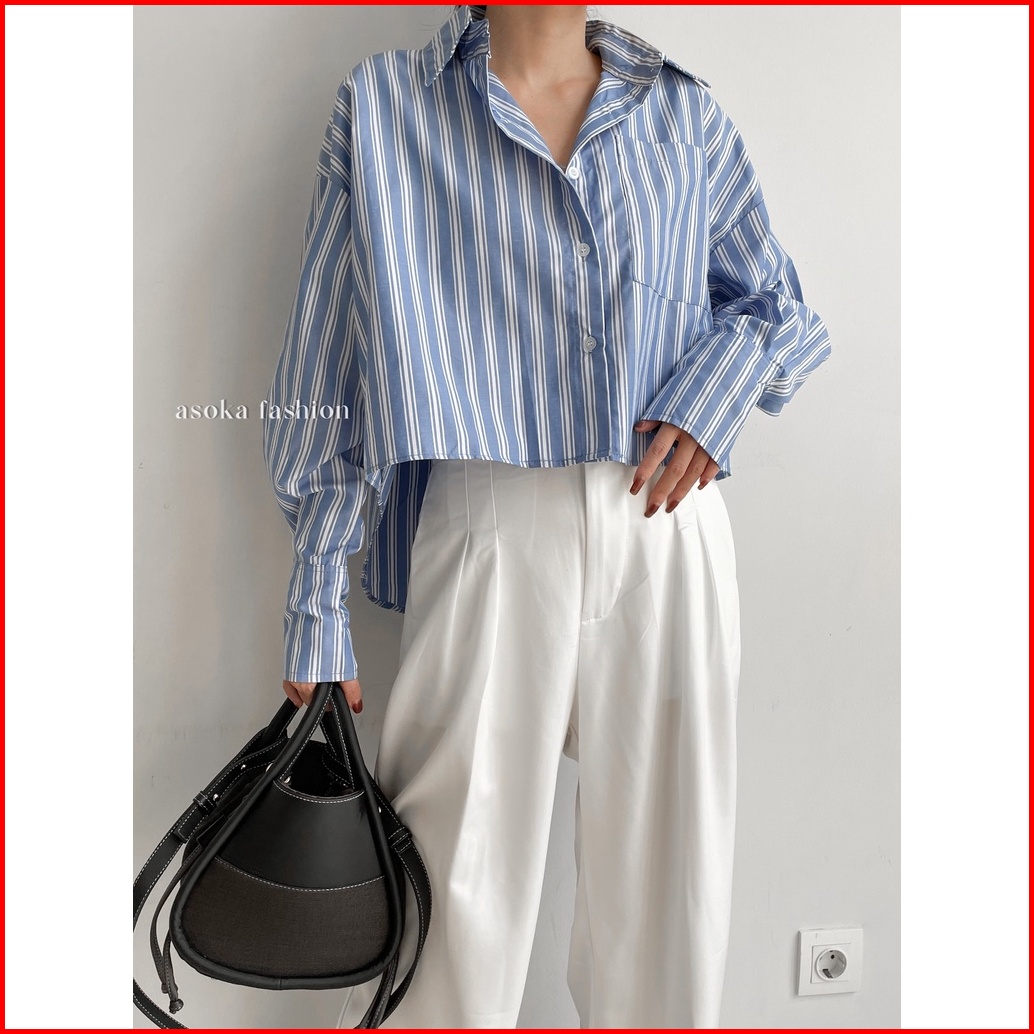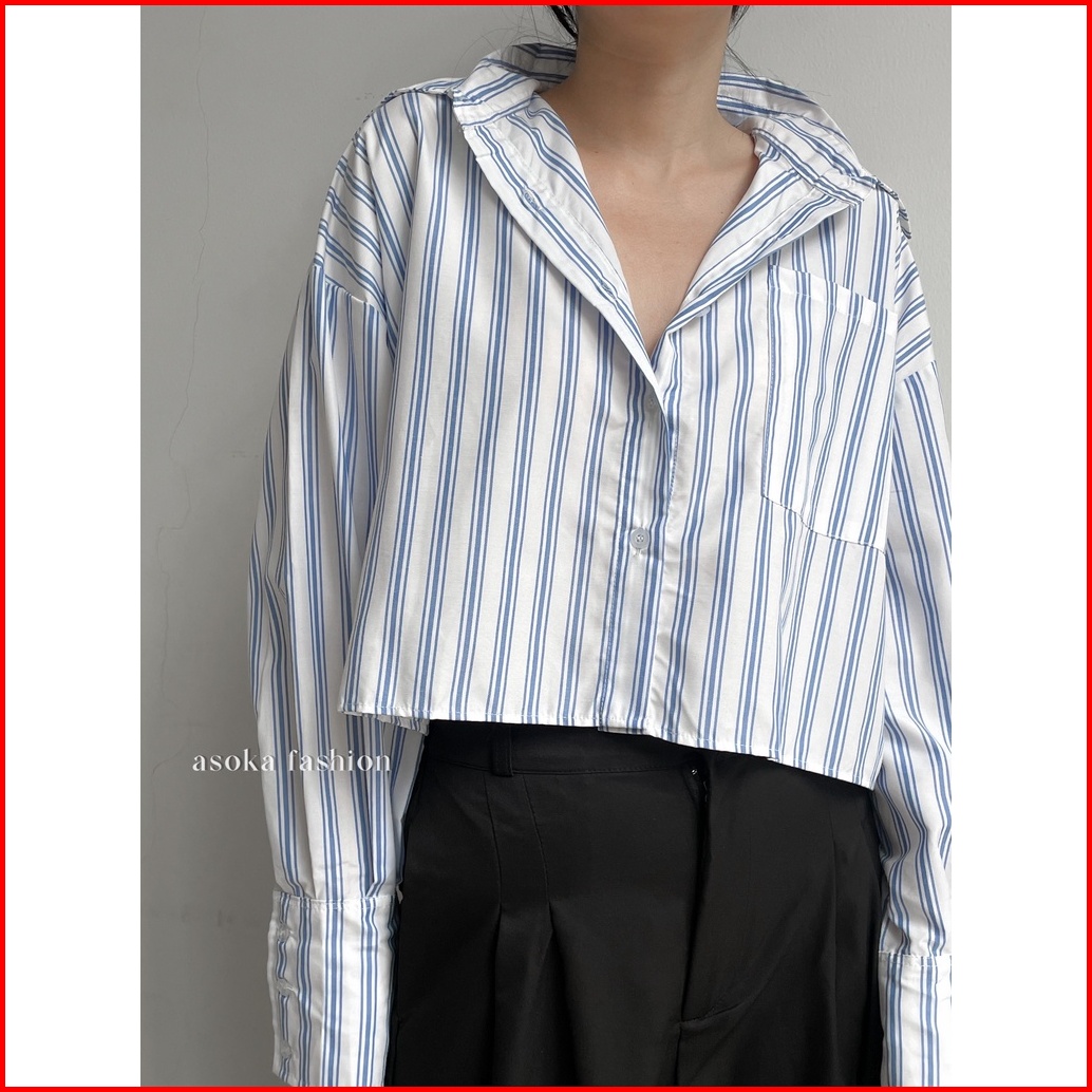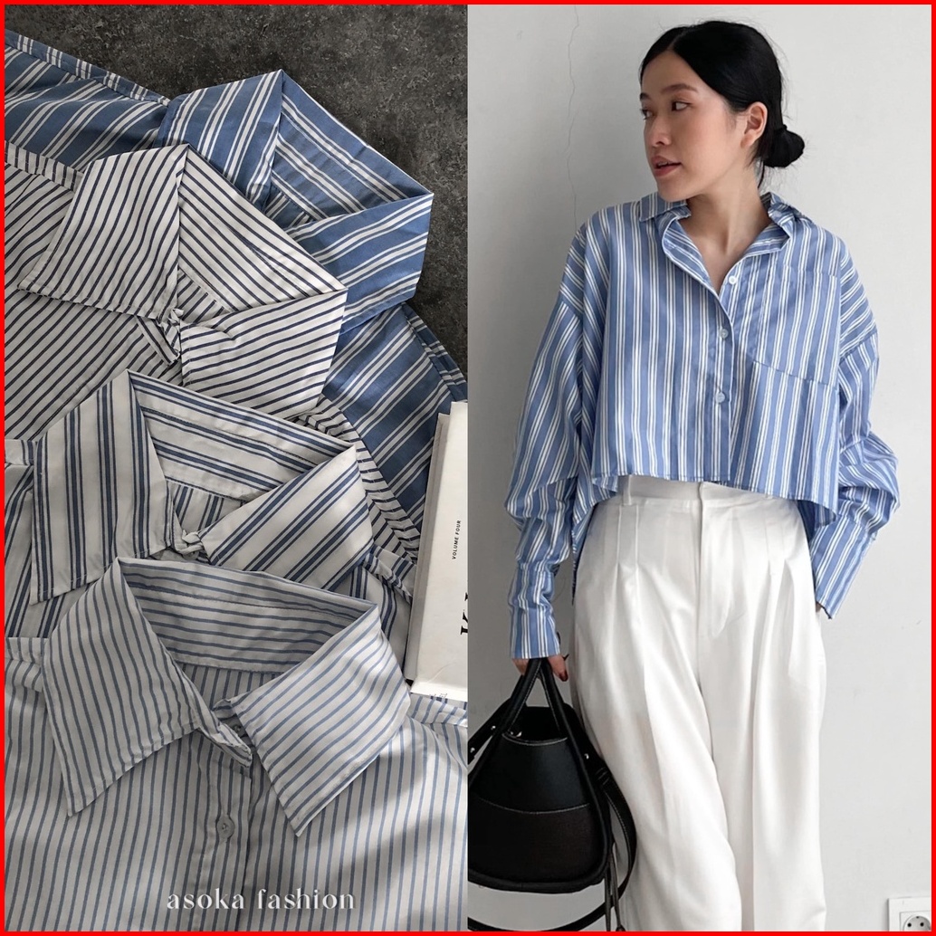 Asoka Theresa Shirt 2156 - Stripe Shirt Kemeja Crop Wanita - Kemeja Katun Salur Garis - Kemeja Oversize