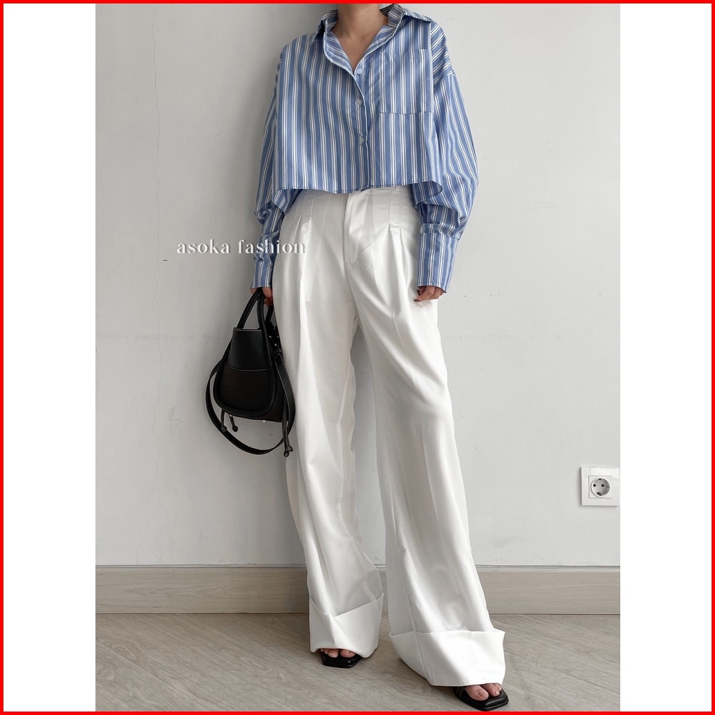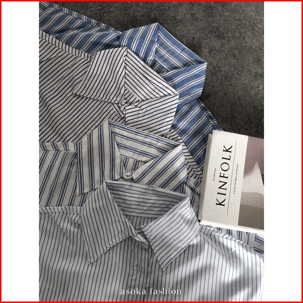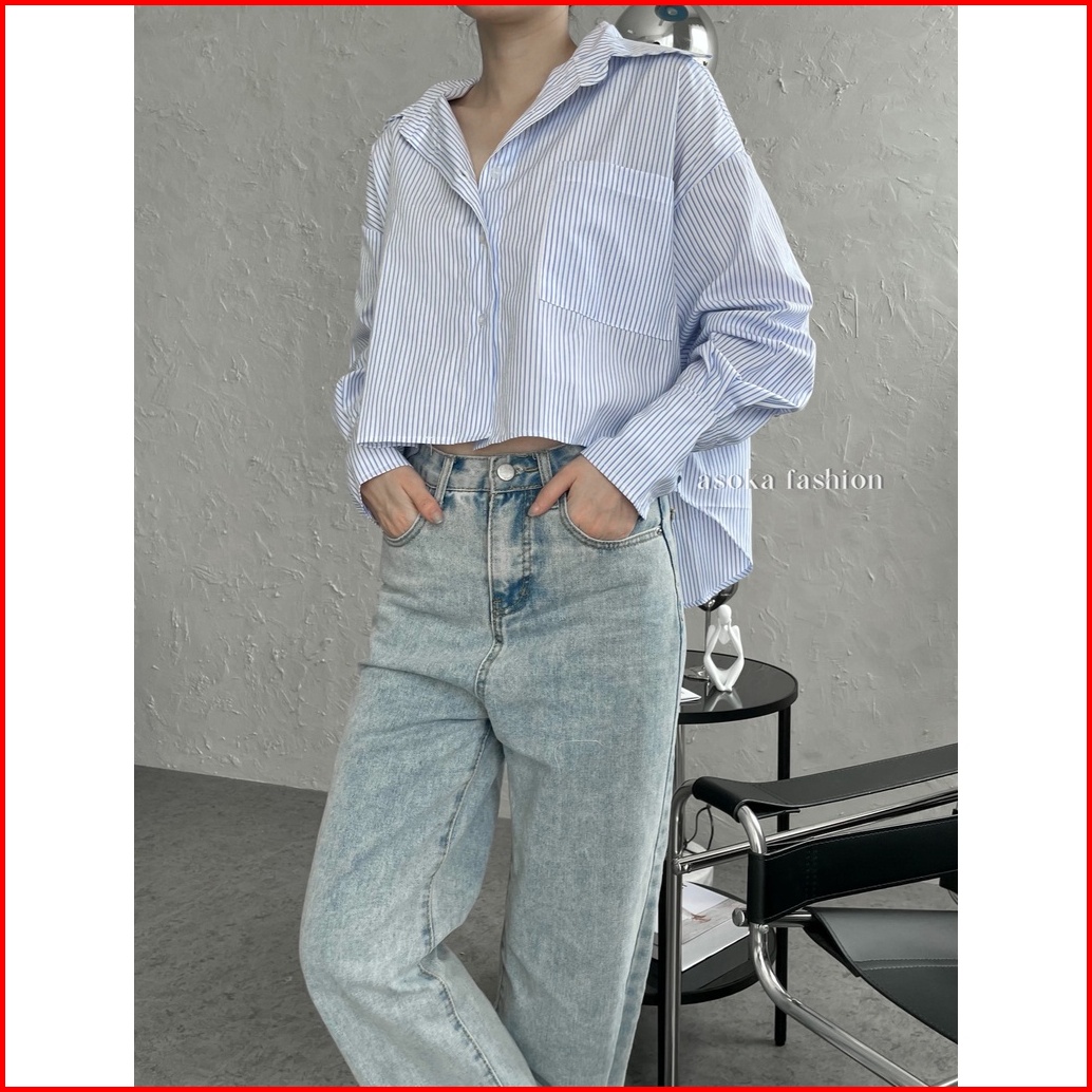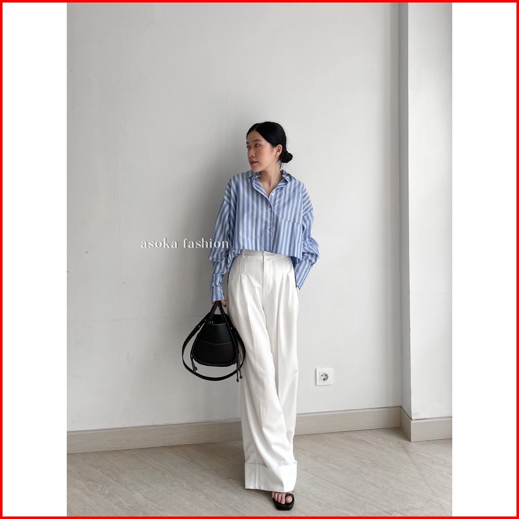 Asoka Theresa Shirt 2156 - Stripe Shirt Kemeja Crop Wanita - Kemeja Katun Salur Garis - Kemeja Oversize