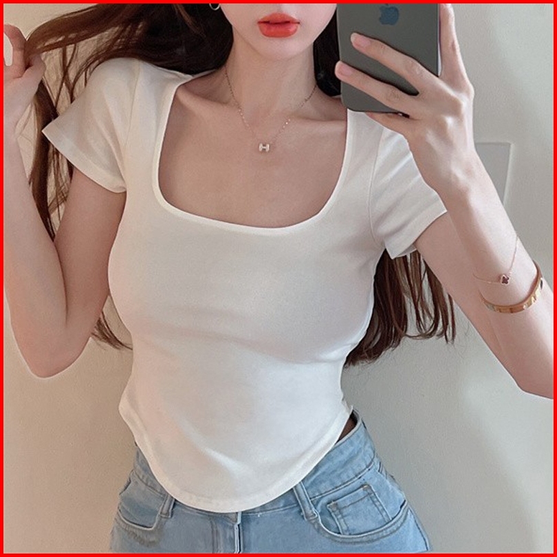 Casual Women S Square Neck Basic Crop Top Shirt 1547 S-xl