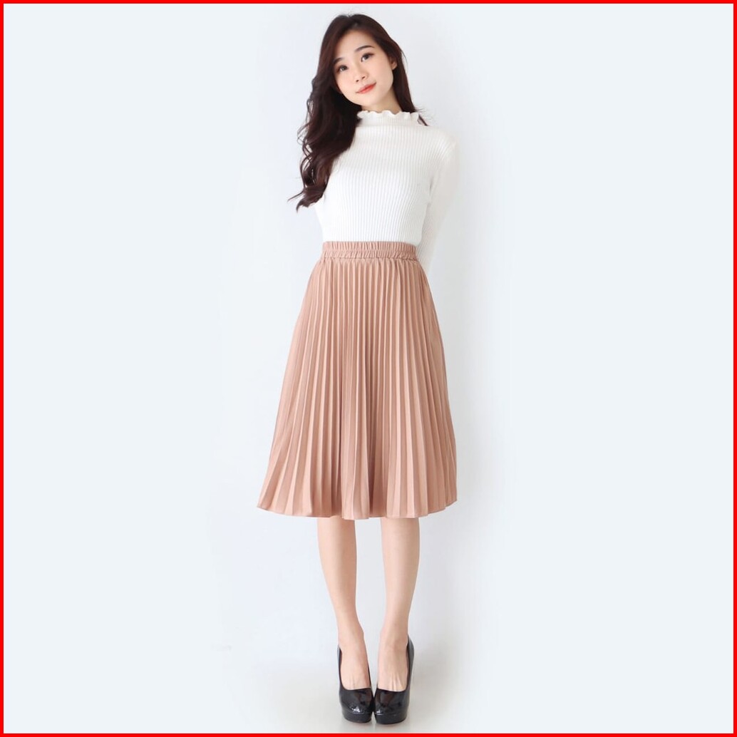 Rok Plisket Wanita Selutut Bahan Hyget Lentur