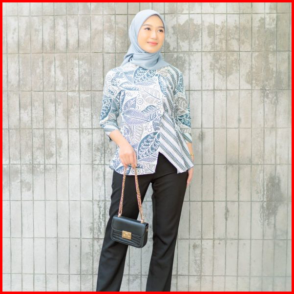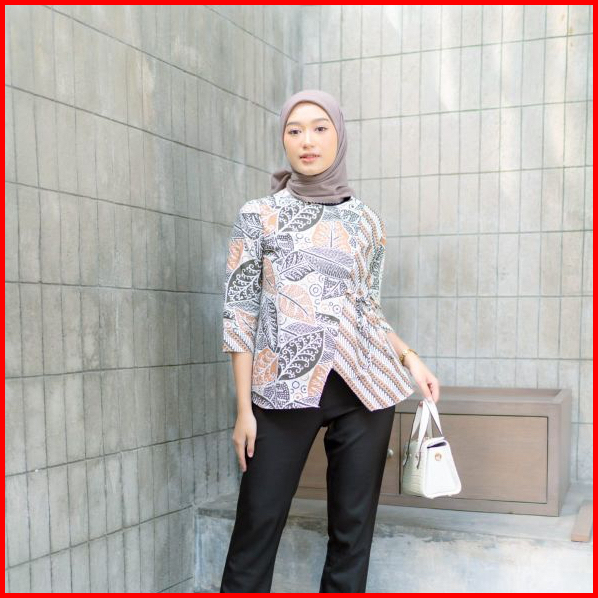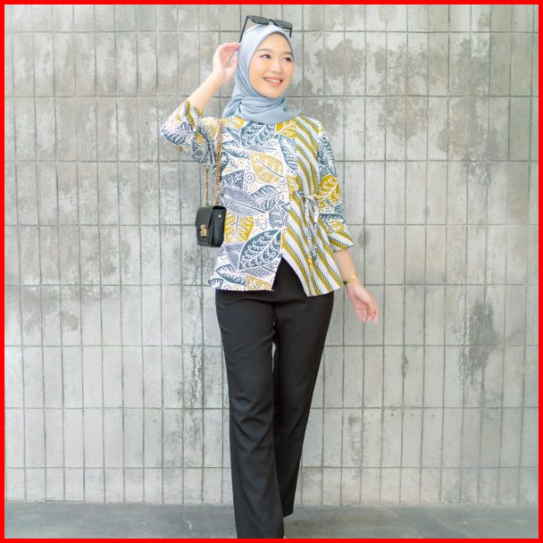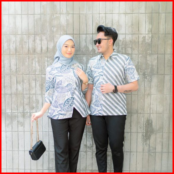Brawee Baju Batik Couple Pria Wanita Batik Seragam Batik Wanita Atasan Tradisional Kerja Motif Pitaloka