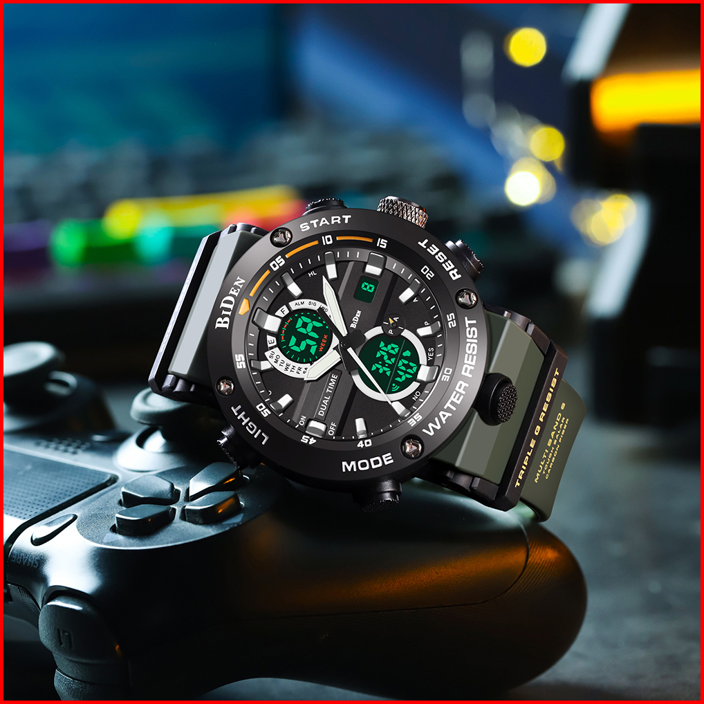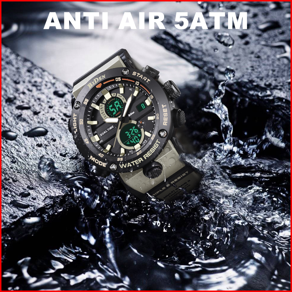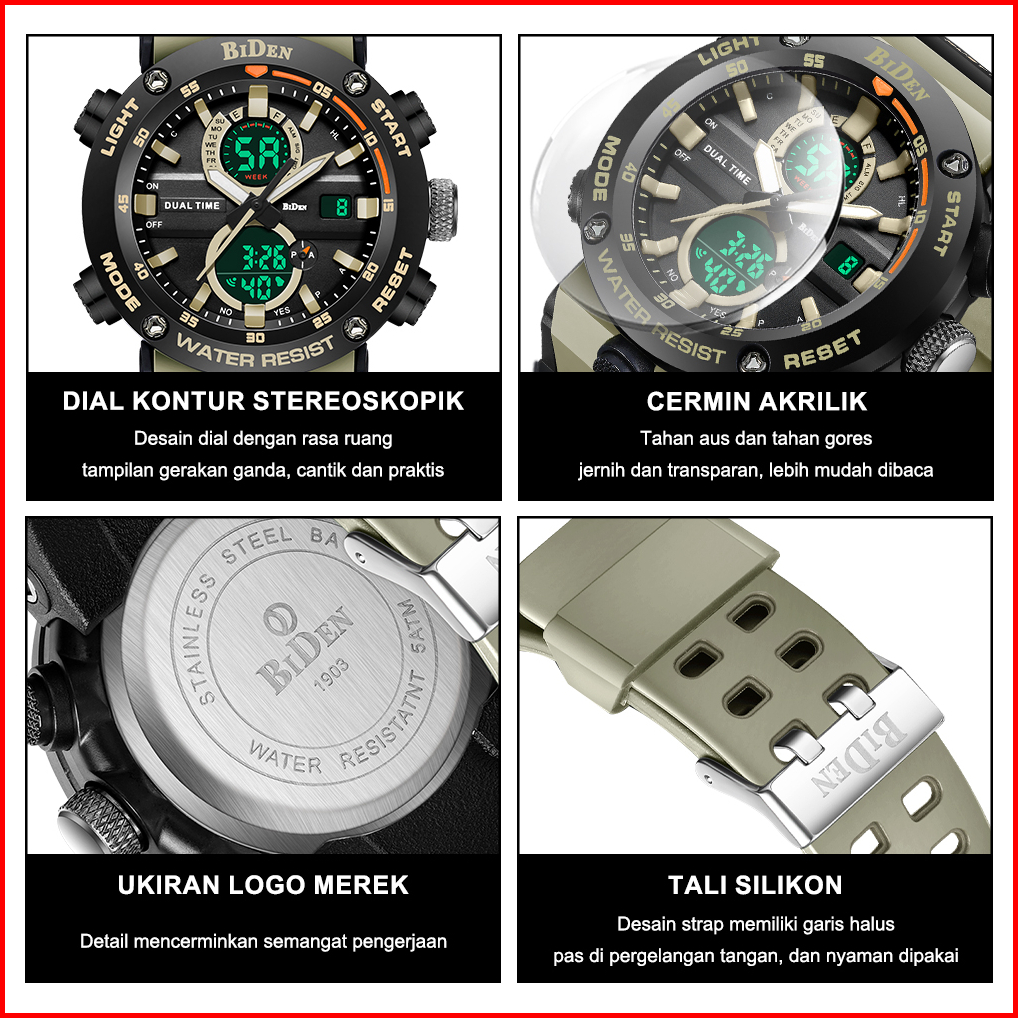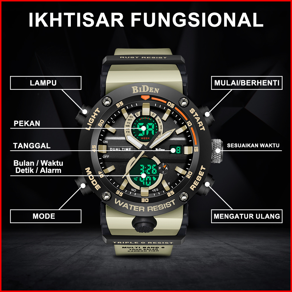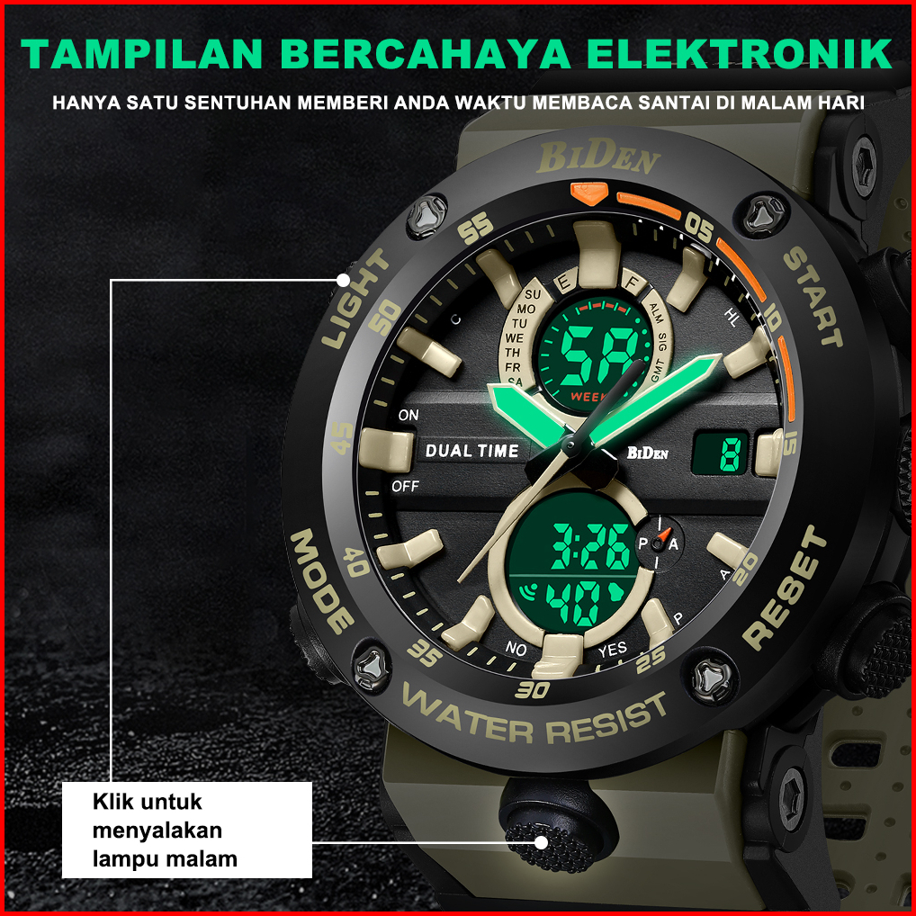Biden Jam Tangan Pria Digital Analog Anti Air Original Olahraga Multifungsi Alarm Bercahaya Tali Silikon Jam Tangan Cowo