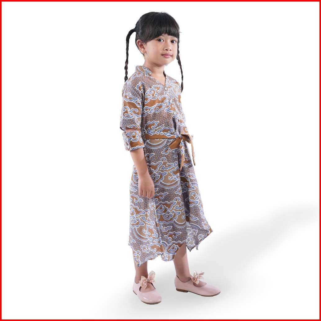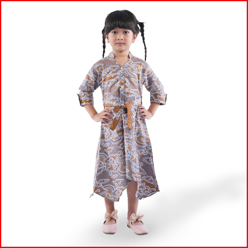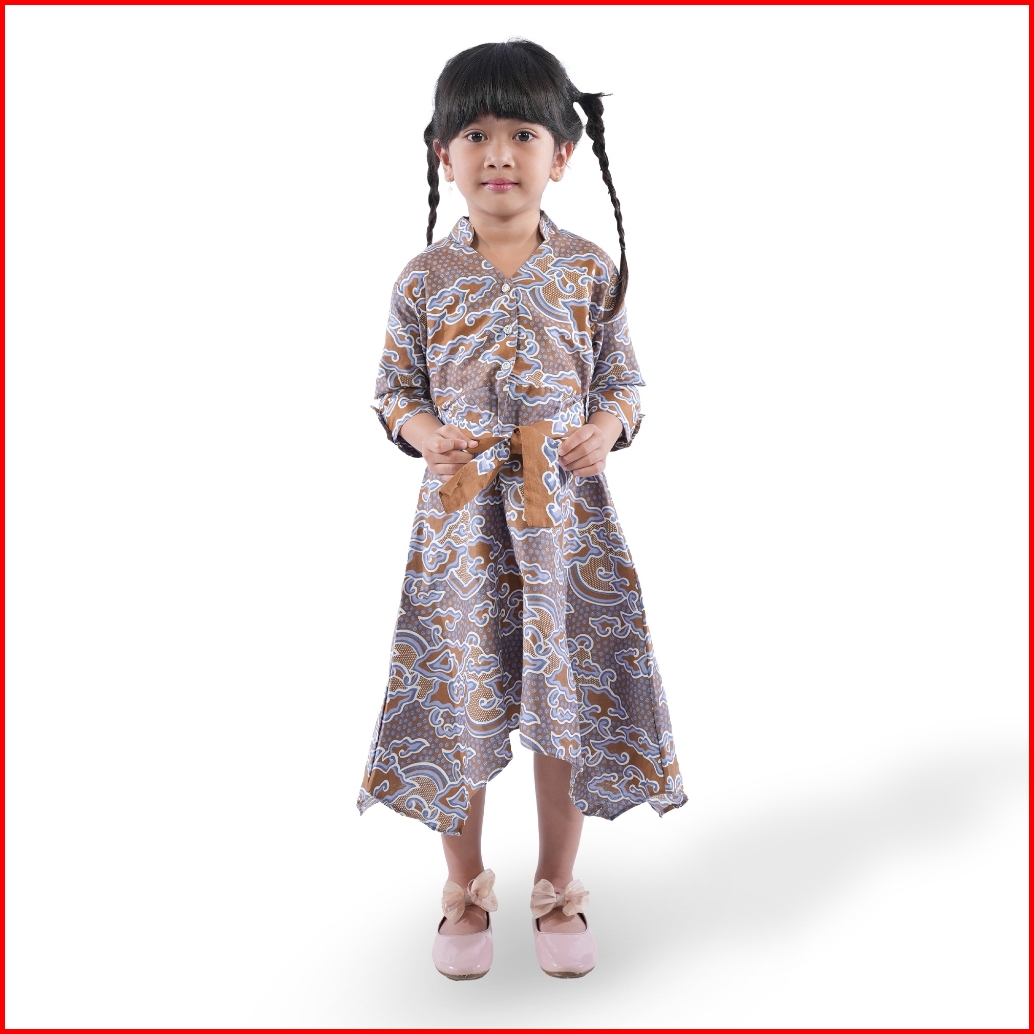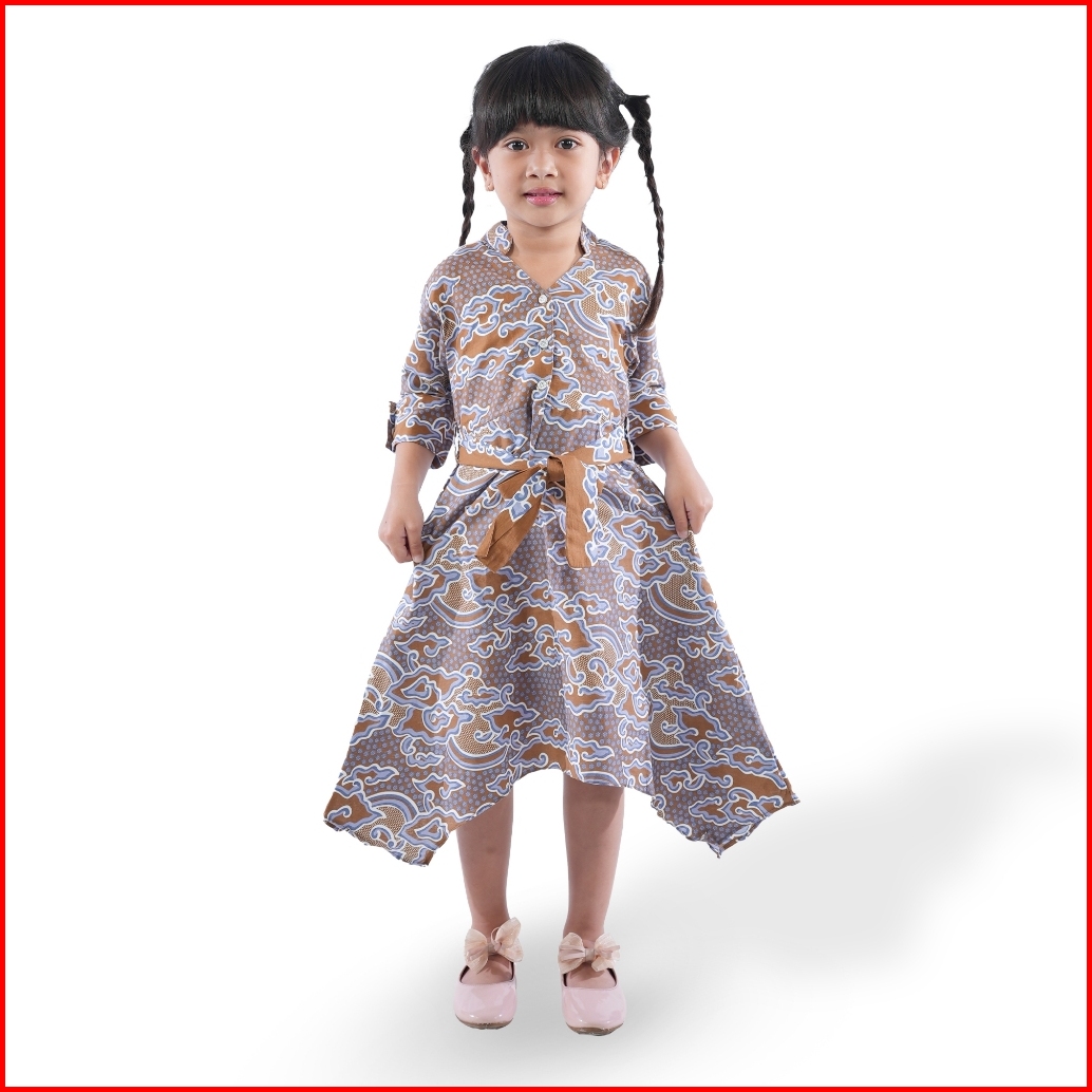 Batik Trusmi Dress Batik Anak Perempuan Motif Mega Mendung Senja Coklat Mop