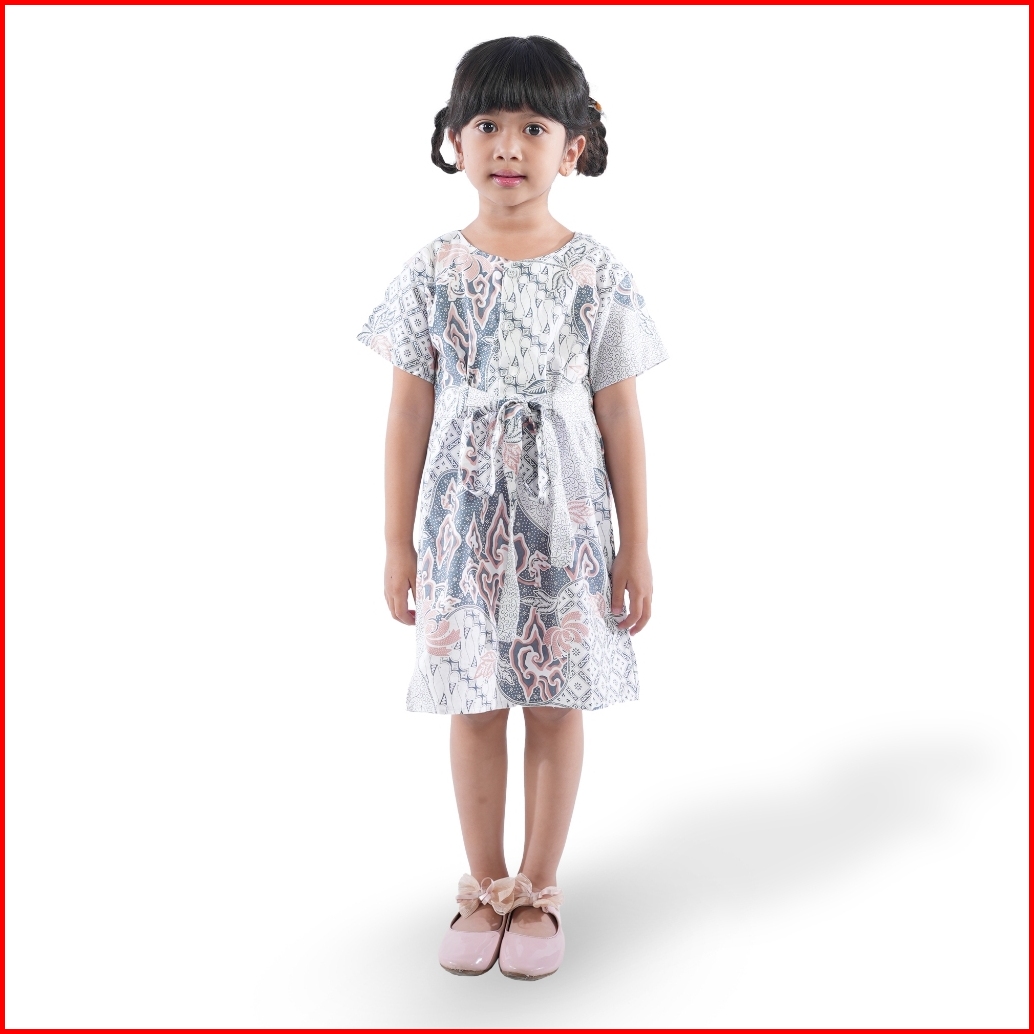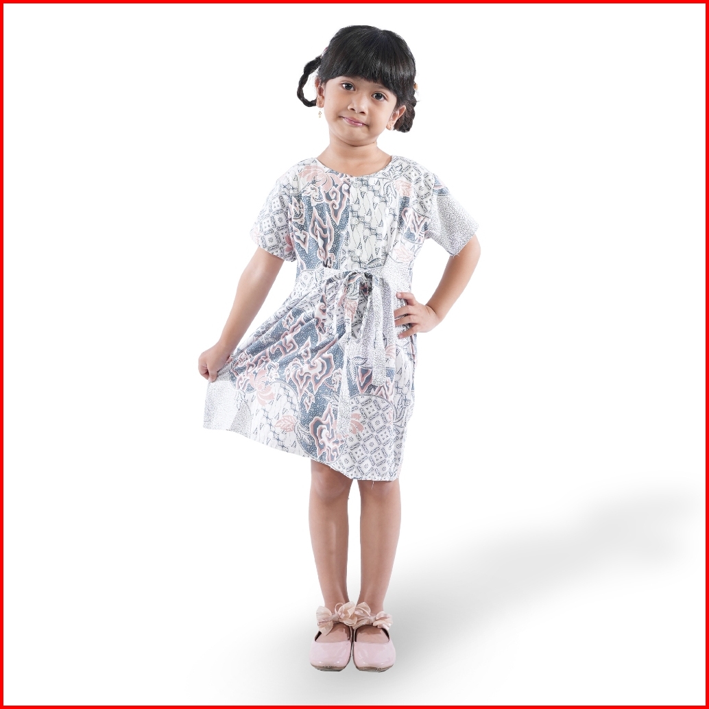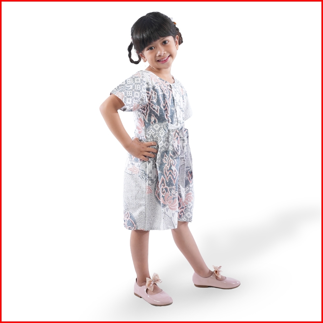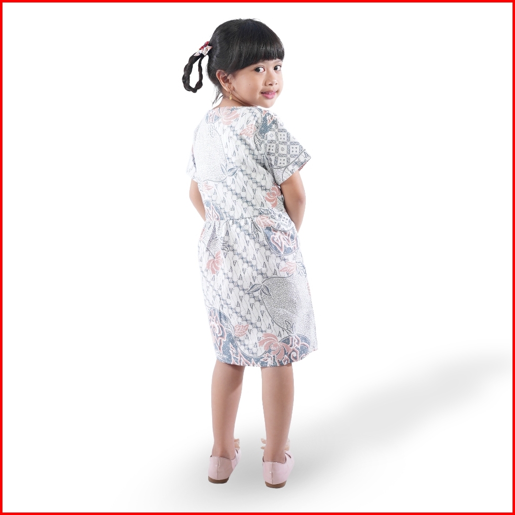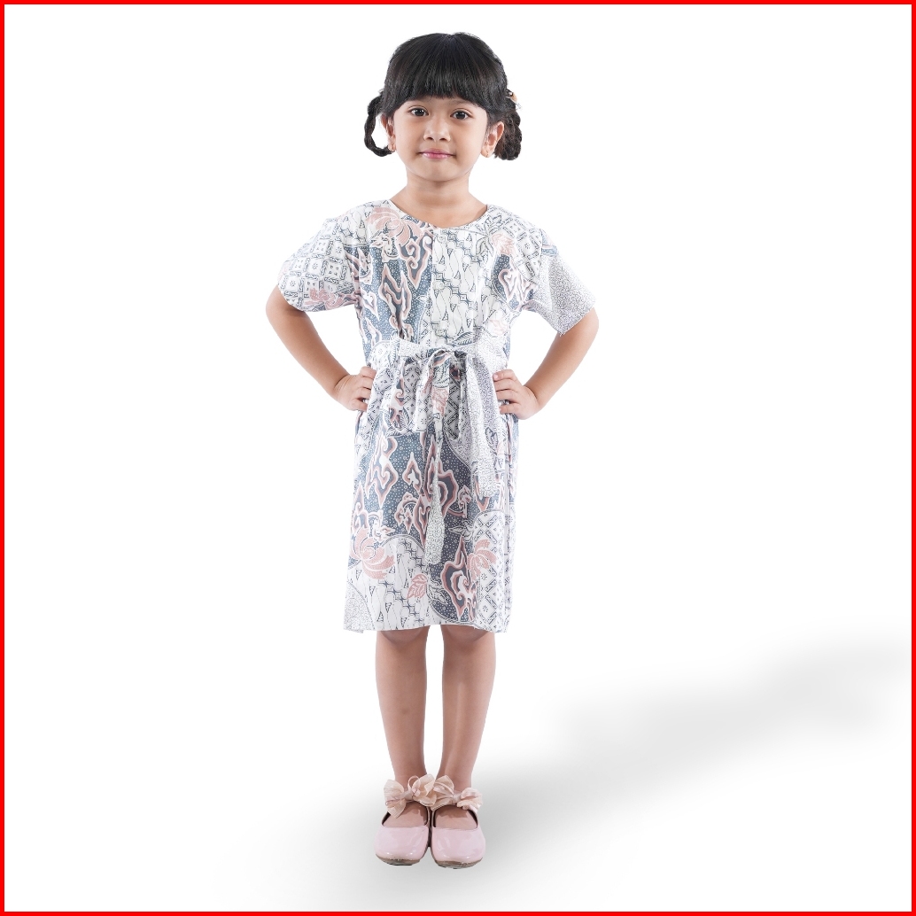 Batik Trusmi Dress Batik Anak Perempuan Motif Batik Mega Mendung Kombinasi Pastel Bna
