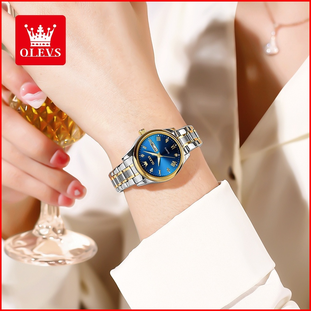 Olevs Jam Tangan Wanita Korea Kecil Anti Air Original Cewek Kalender Luminous Women Watch 5563
