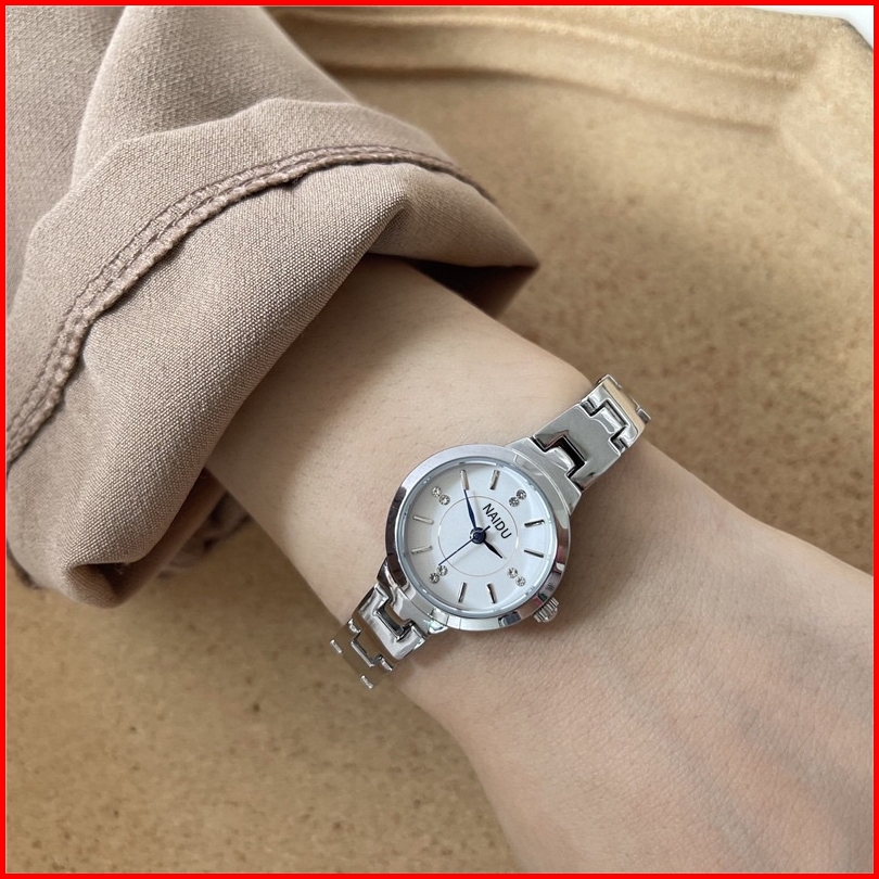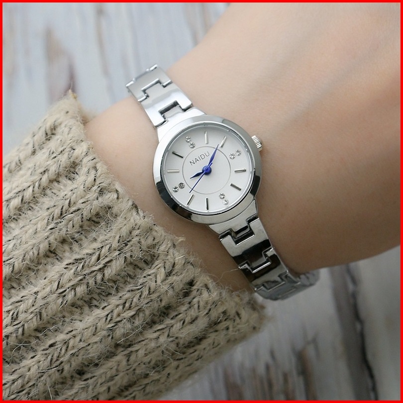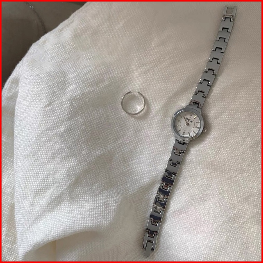 Luxelane Jam Tangan Wanita Rantai Ulzzang Warna Silver Putih Bulat Kecil Jam Cewek Strap Elegan Mewah Korea Naidu Korean