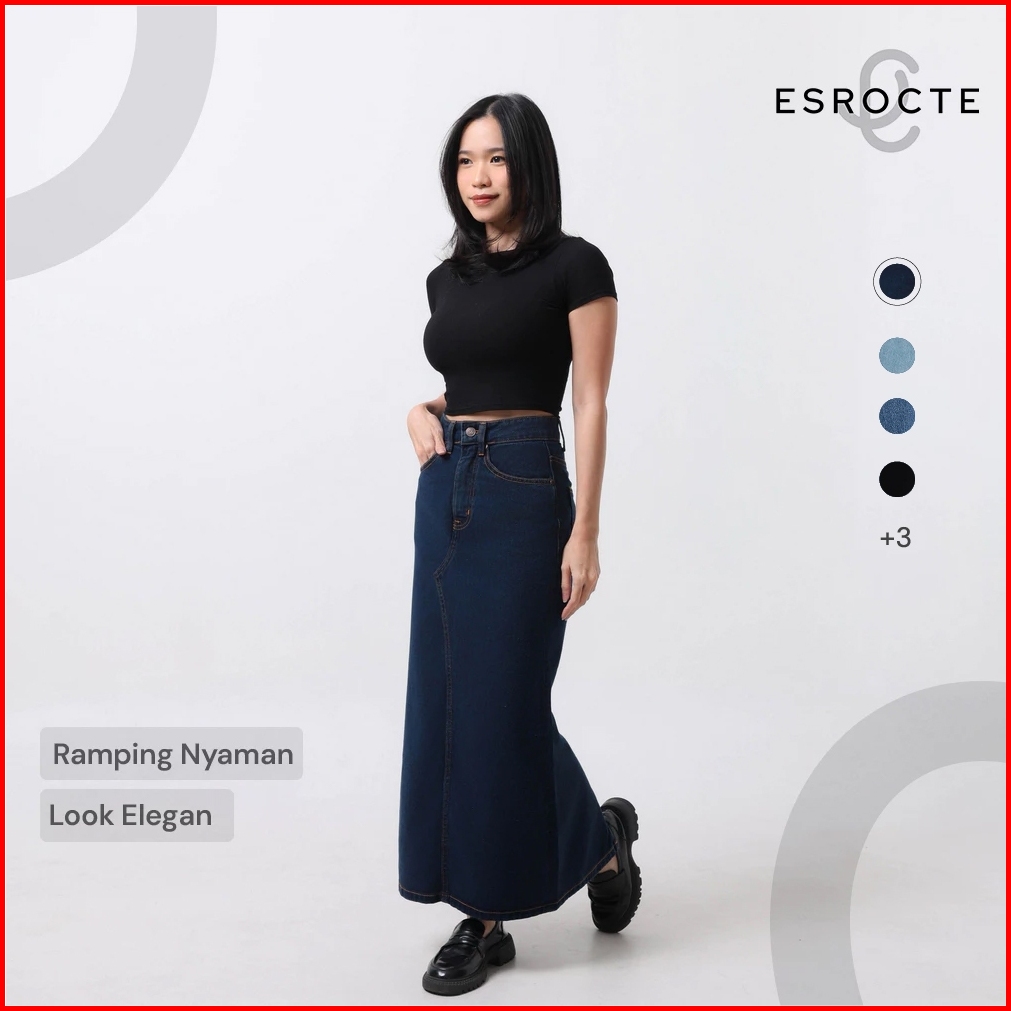 Esrocte Nola Skirt Rok Span Jeans Belah Belakang High-waist Wanita 001 2638
